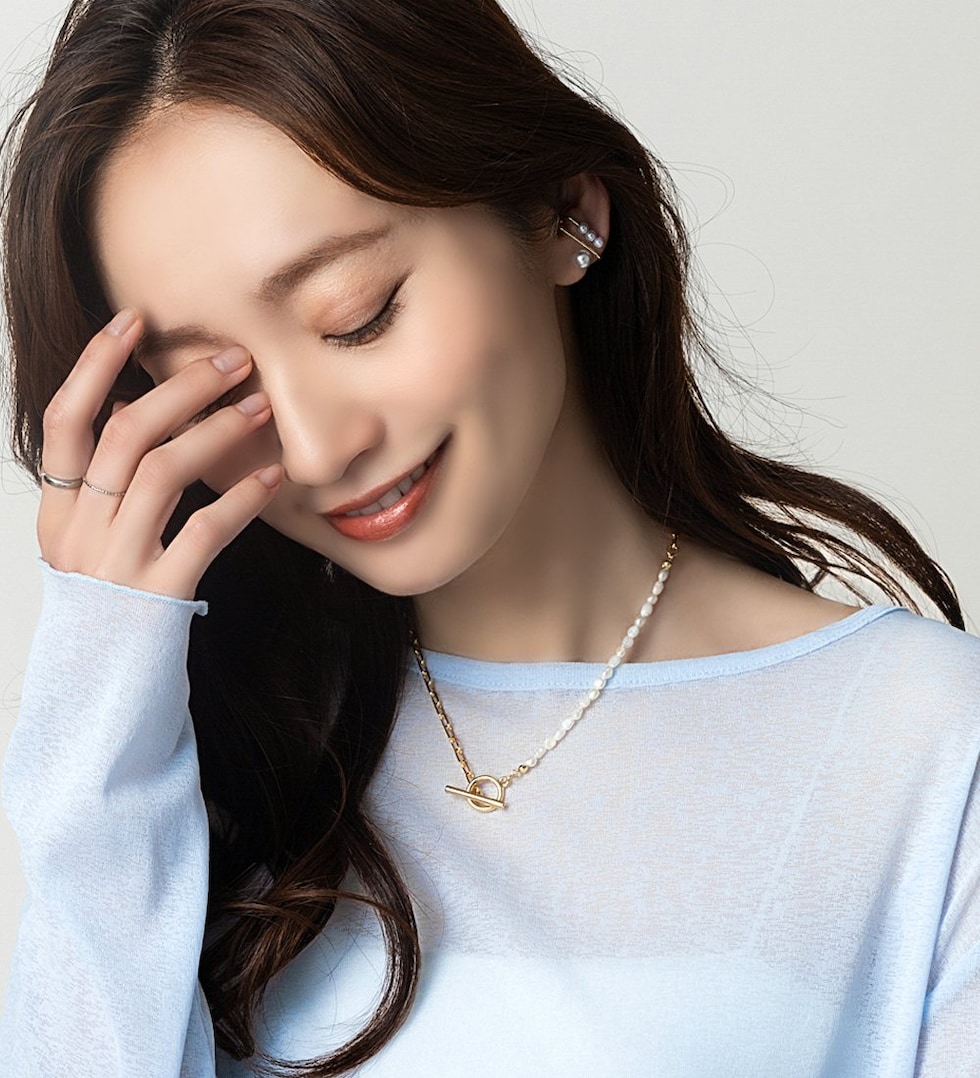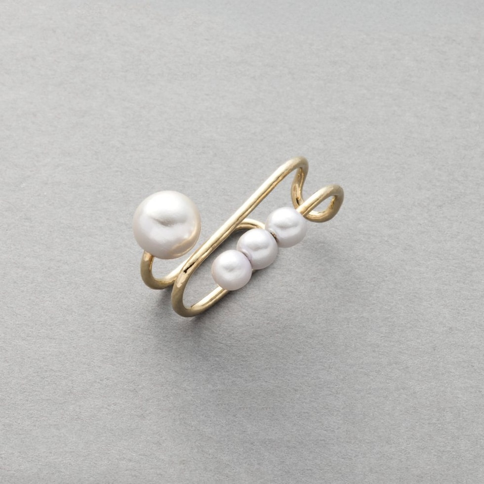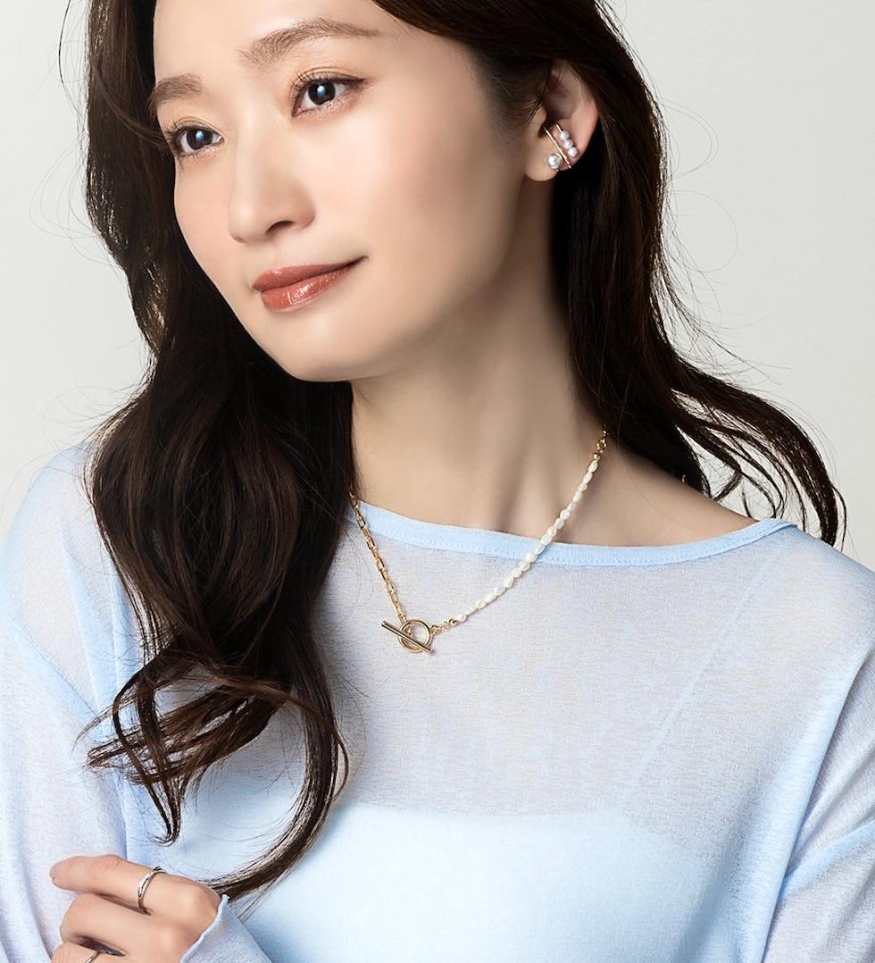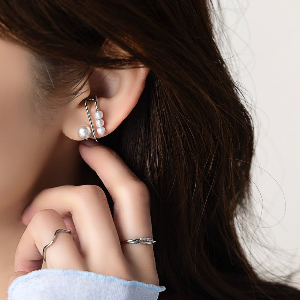 ニュアンスたっぷりパール×2連メタルの片耳用イヤーカフ。一つでこなれ感あるレイヤード風メタルにパールを配したオーバル型デザイン。程よいボリューム感と華やかさがデイリーに取り入れやすいアイテムです。