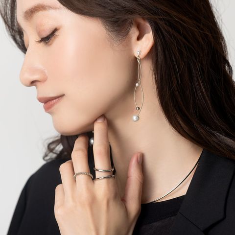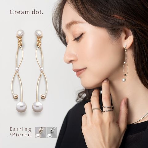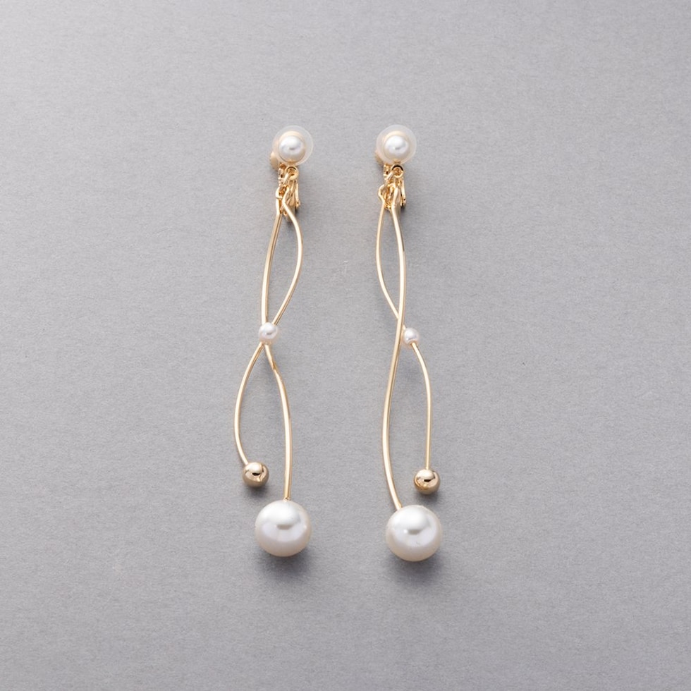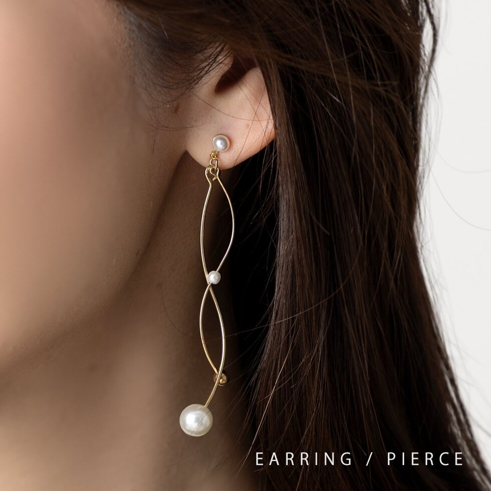 パールとウェーブラインのメタルが大人上品なイヤリング/ピアス。表情豊かに揺れてグッと華やかに仕上がるひと品。上品な印象をプラスしコーデをクラスアップしてくれるアイテムです◎