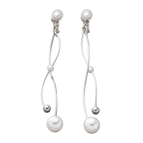 イヤリング ピアス レディース パール ウェーブ メタル ライン 揺れる ネジ式 シリコンカバー スタッド cream dot ゆうパケット [シルバー_イヤリング]