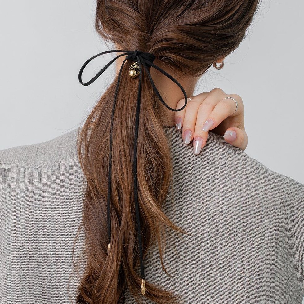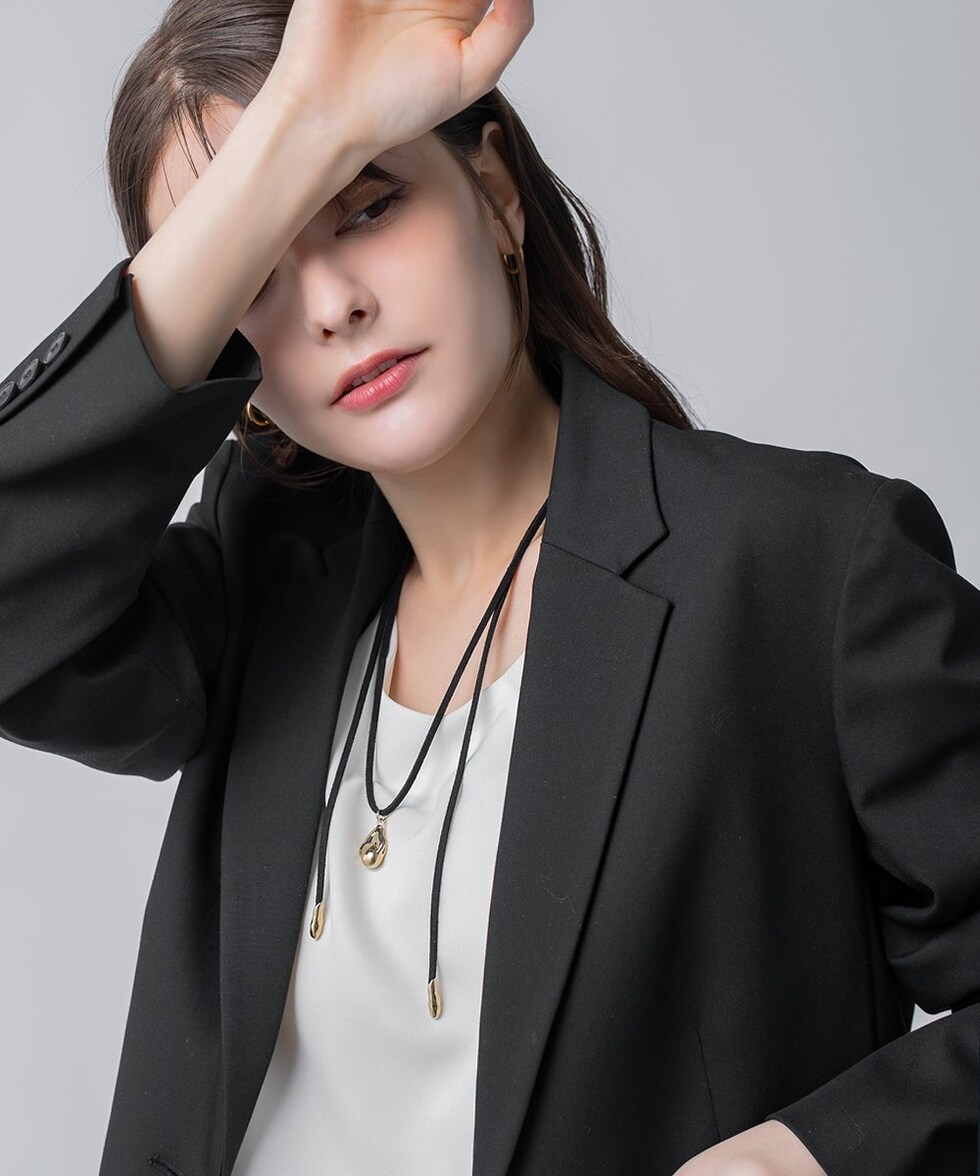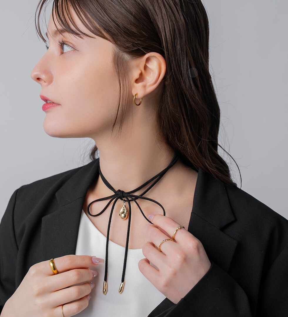 これ一つで旬のコーデが楽しめるロングコードネックレス。クラフト感のあるメタルドロップがアクセントにぴったり。リボン結びにしてチョーカー風にしたり、トップスに合わせて長さを調節したりとアレンジ自由自在♪ヘアアクセとしても活躍します。