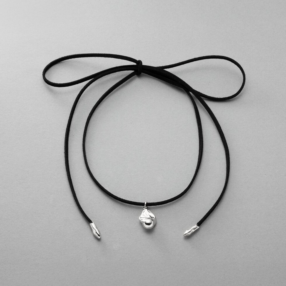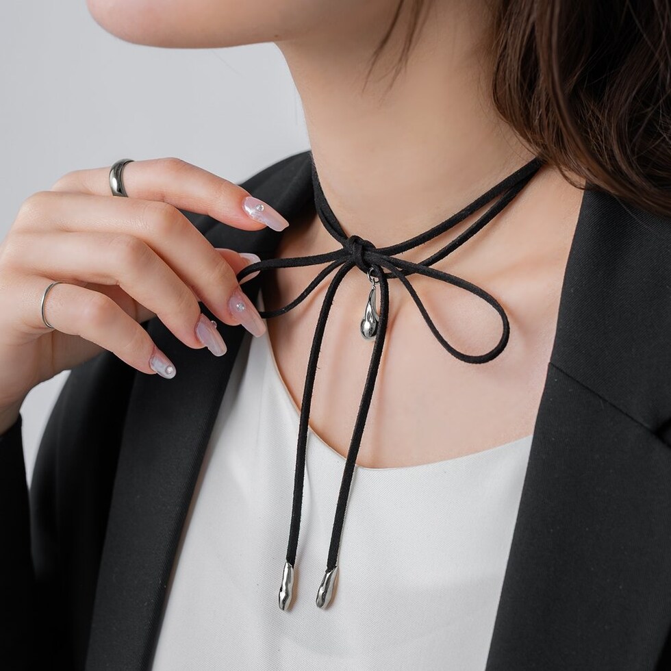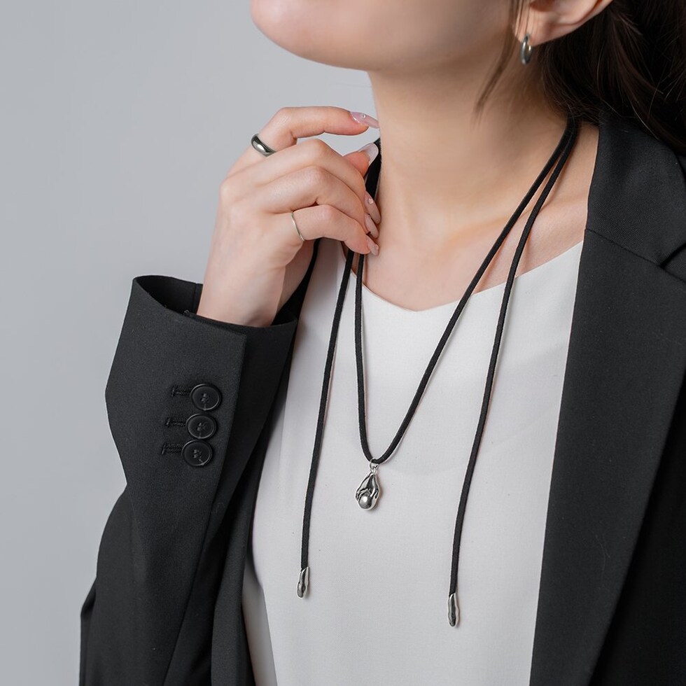 ネックレス レディース チョーカー ロングチョーカー レザーコード コード PUレザー メタル ドロップ ブラック cream dot ゆうパケット [シルバー_ワンサイズ]