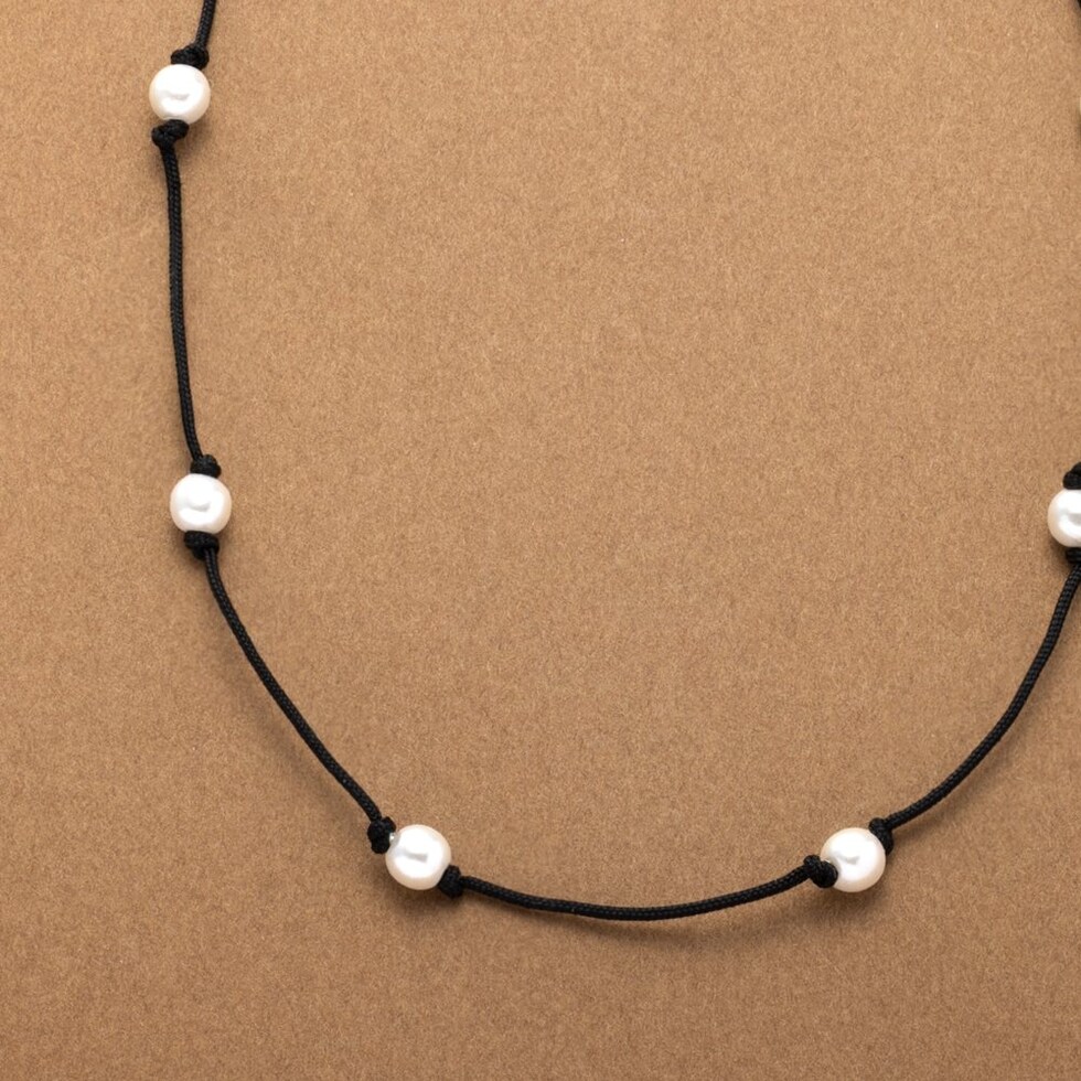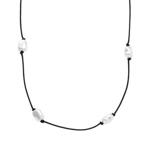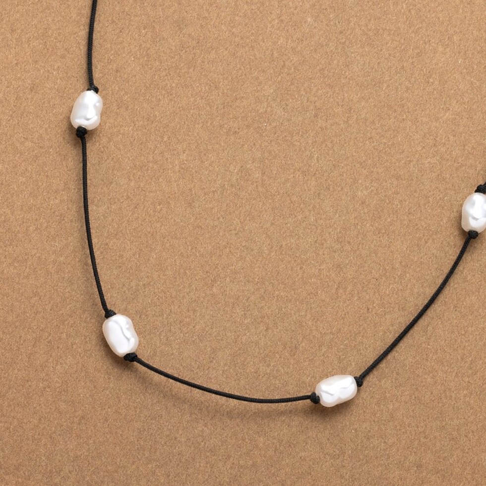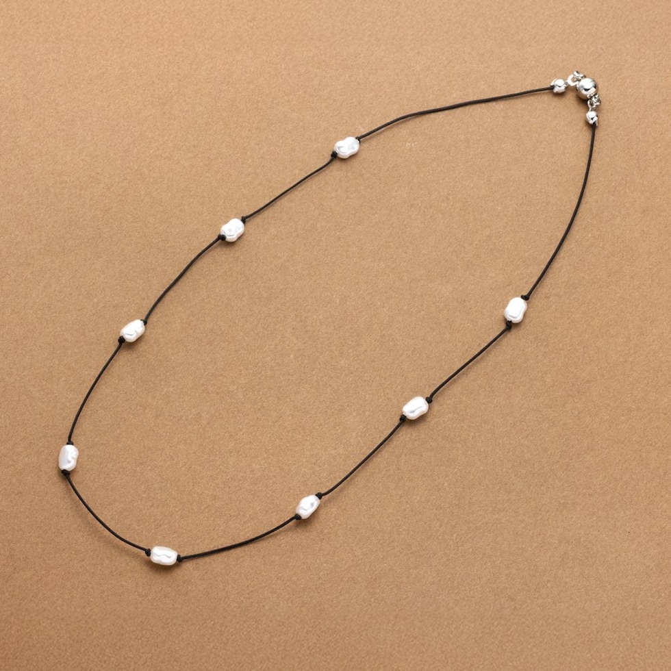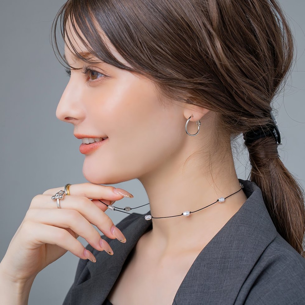 2typeから選べる、ステーションパールとコードのネックレス。留め具部分は錆びにくいステンレス製&着脱簡単なマグネットタイプでデイリーに活躍間違いナシ◎ブラックカラーのコード使いでカッチリしすぎずカジュアルにもキレイめにも使える絶妙デザインです。