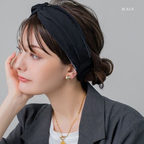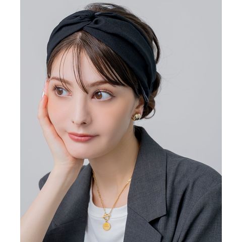 ヘアアクセサリー レディース ヘアターバン ヘアバンド バイカラー パイピング ワイド 幅広 色 柔らかい ヘアアクセ ヘアアレンジ 簡単 まとめ髪 髪留め ターバン ネイビー cream dot ゆうパケット [ブラック_ワンサイズ]