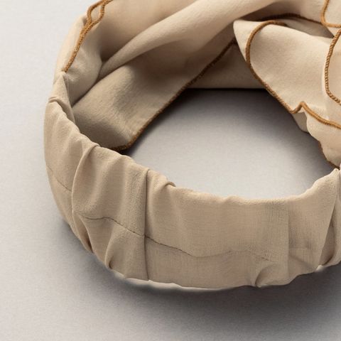 落着きのある色合いにパイピングのアクセントが効いたヘアターバン。フロント部分をクロスさせたワイドなデザインがつけるだけでこなれ感をプラスします◎柔らかな質感で大人っぽさも惹き立て、コーディネートのワンポイントに活躍するアイテム◎