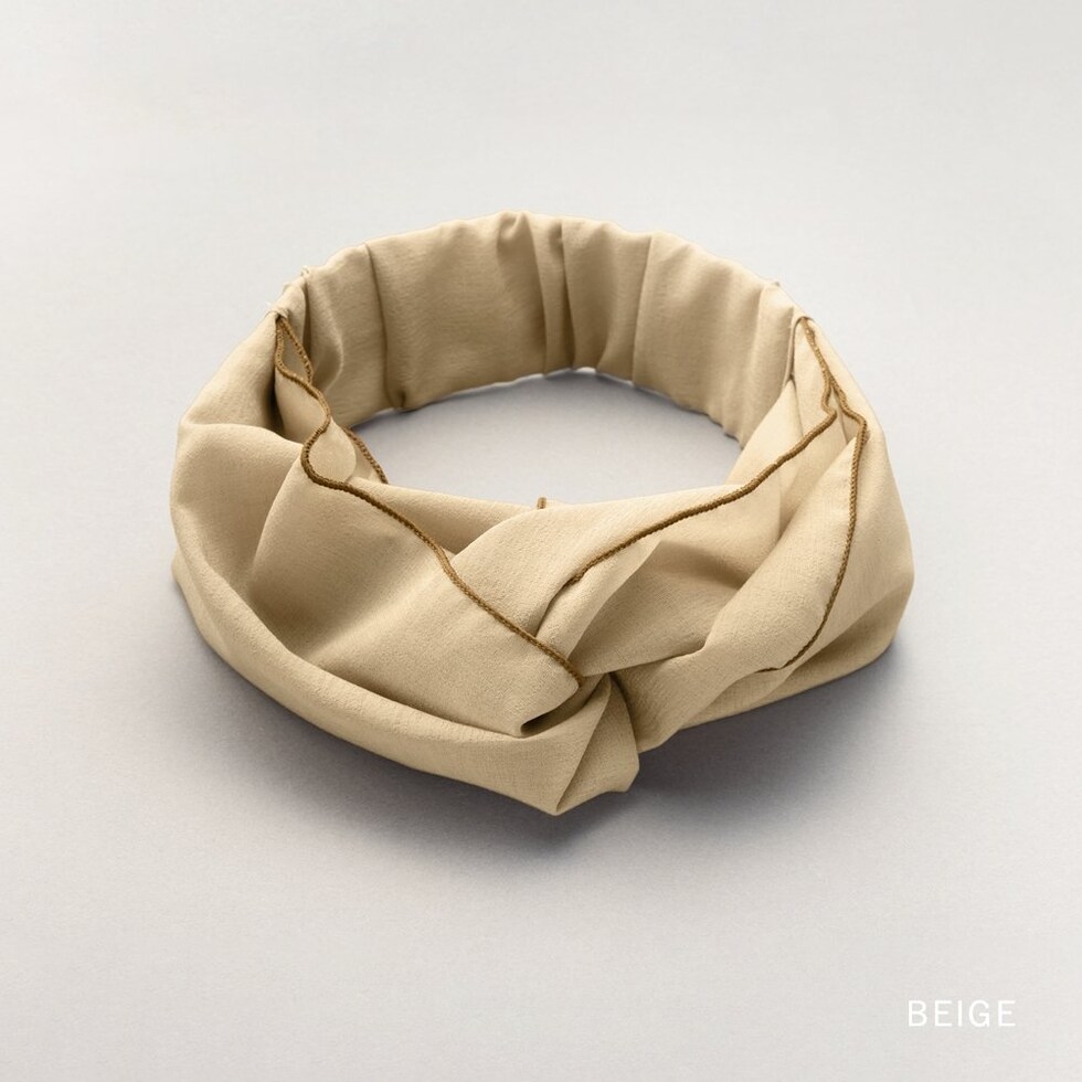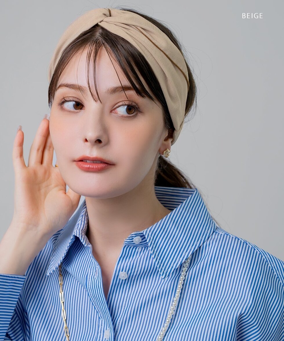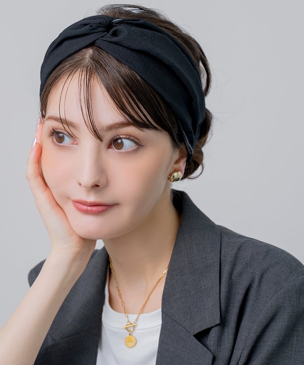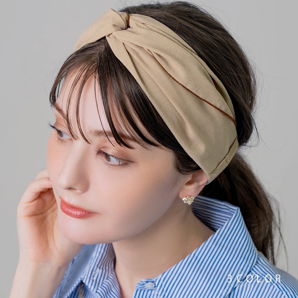 落着きのある色合いにパイピングのアクセントが効いたヘアターバン。フロント部分をクロスさせたワイドなデザインがつけるだけでこなれ感をプラスします◎柔らかな質感で大人っぽさも惹き立て、コーディネートのワンポイントに活躍するアイテム◎