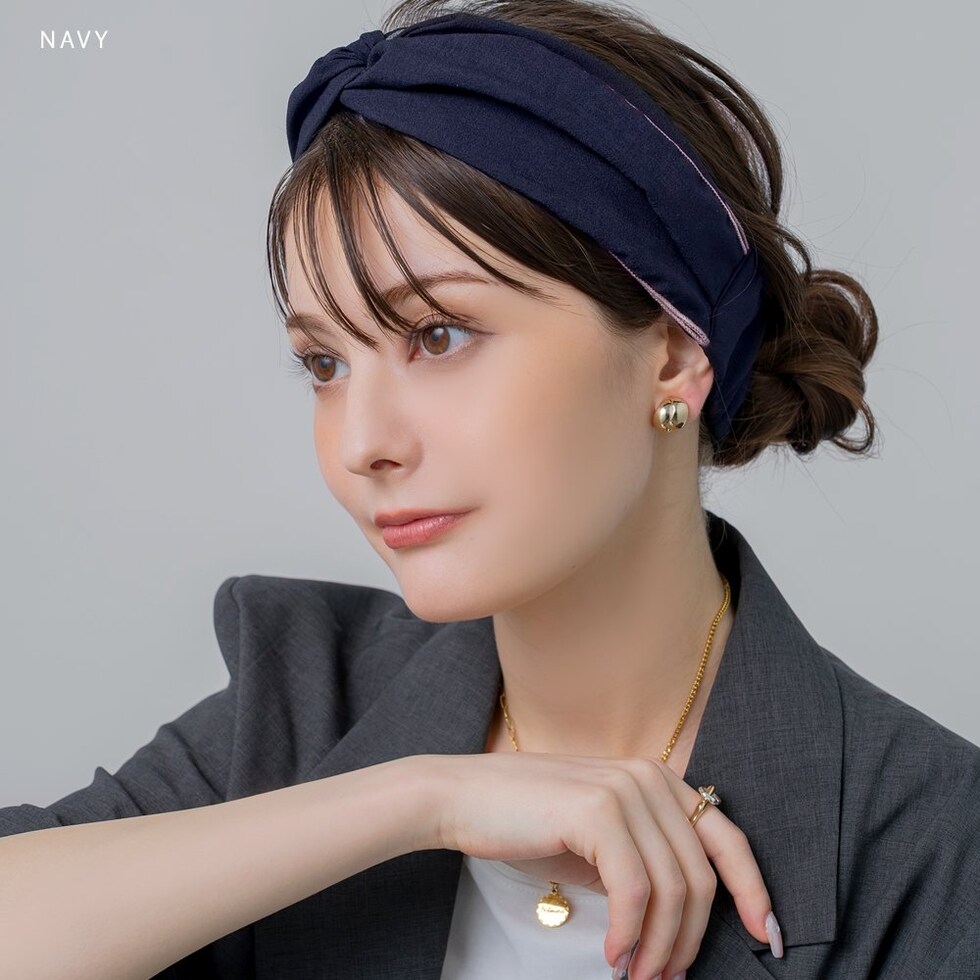 ヘアアクセサリー レディース ヘアターバン ヘアバンド バイカラー パイピング ワイド 幅広 色 柔らかい ヘアアクセ ヘアアレンジ 簡単 まとめ髪 髪留め ターバン ネイビー cream dot ゆうパケット [ネイビー_ワンサイズ]