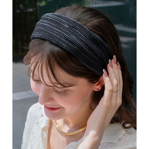 細プリーツが高見えするワイドカチューシャ。程よいボリューム感とプリーツが上品なデザイン。落着きのあるシックな色使いが大人っぽく身に着けられるアイテムです。普段使いに重宝しそう◎