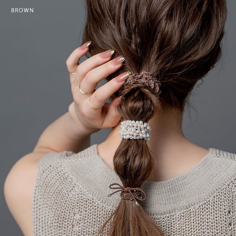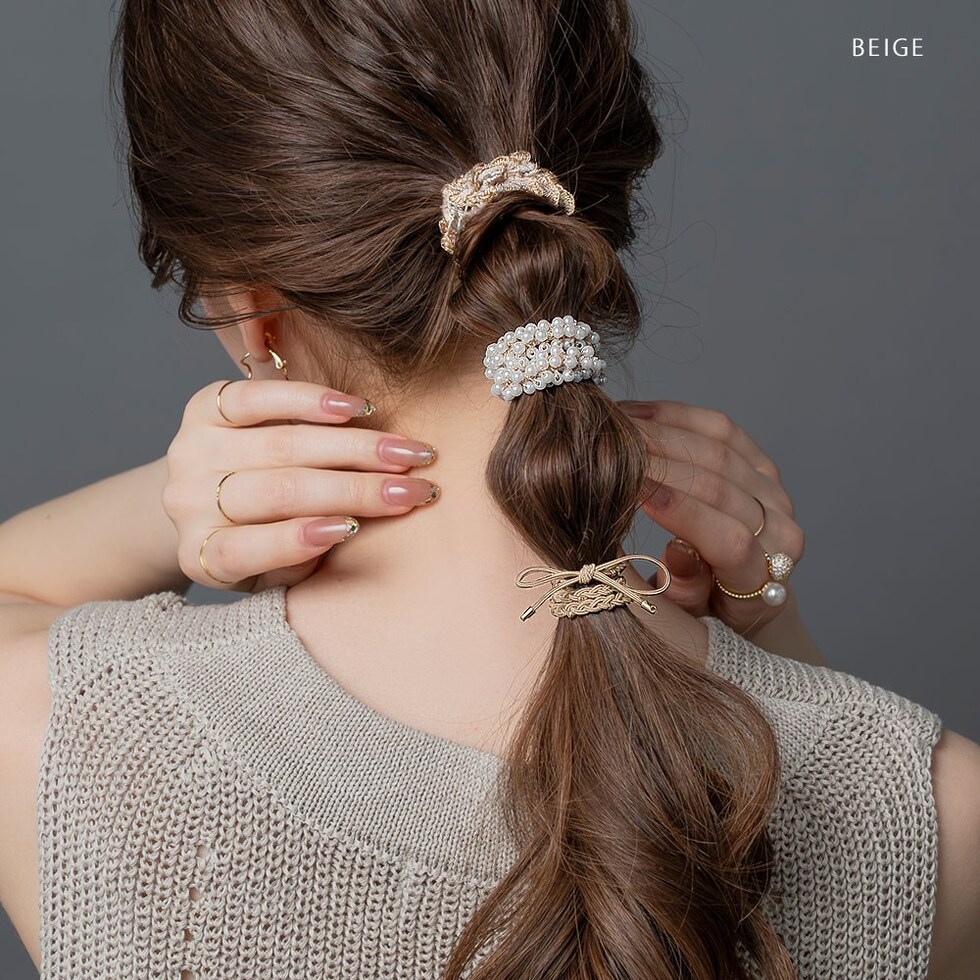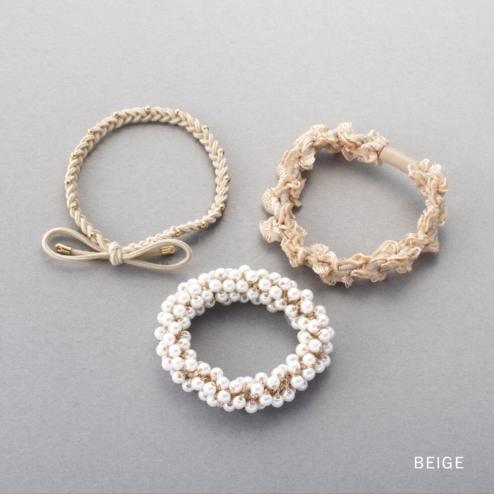 ヘアアクセサリー レディース 3点セット ヘアゴム リボン パール ミニフリル ヘアアクセ ヘアアレンジ 簡単 まとめ髪 髪留め 小さめ cream dot ゆうパケット [ベージュ_3セット]