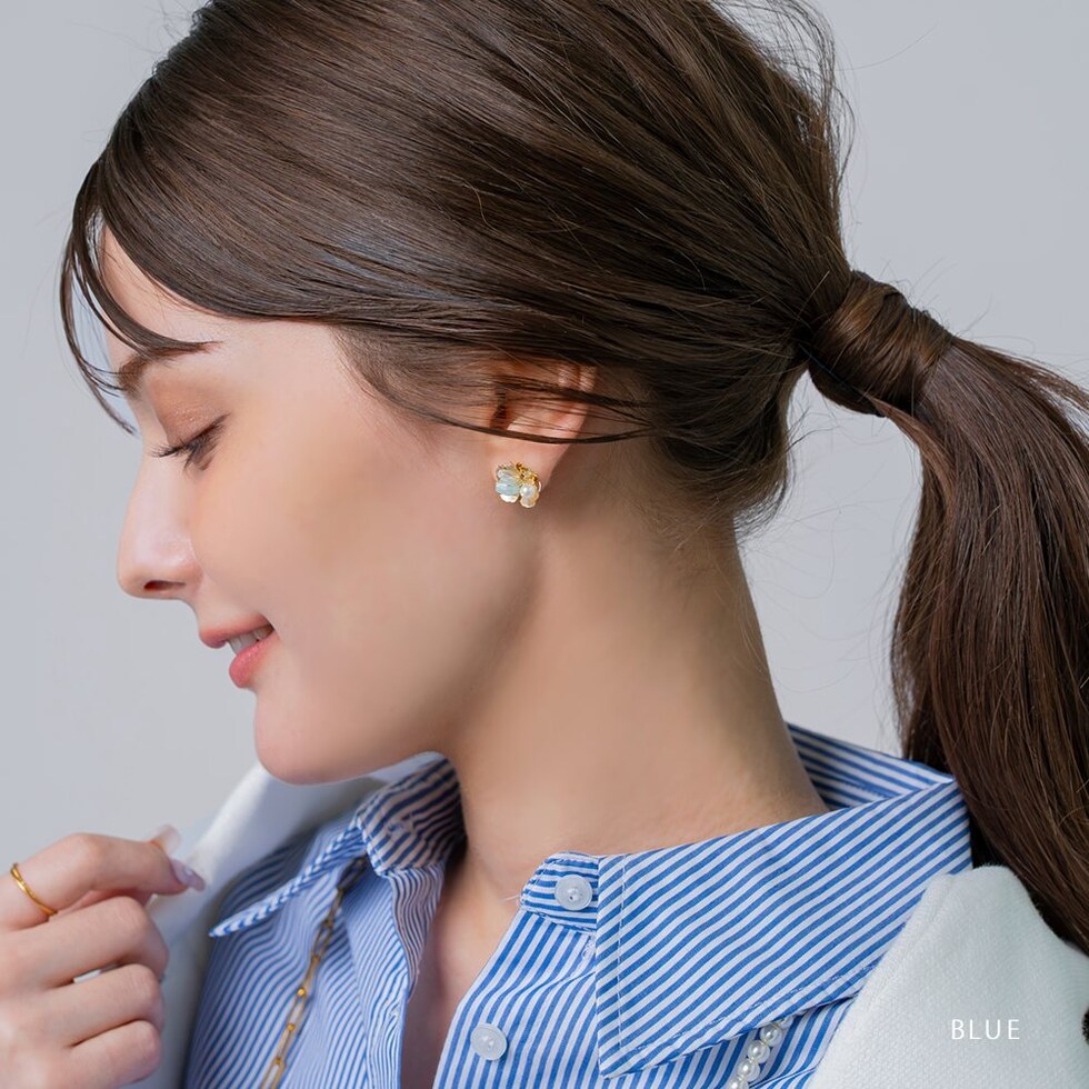 ピアス レディース メタル フラワー パール カラービーズ スタッド 花 クリア cream dot ゆうパケット [ブルー_ピアス]