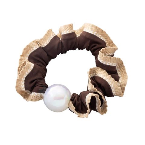 ヘアアクセサリー レディース シュシュ パール フリル レース バイカラー ヘアゴム ヘアアクセ ヘアアレンジ 簡単 まとめ髪 髪留め cream dot ゆうパケット [ブラウン_ワンサイズ]