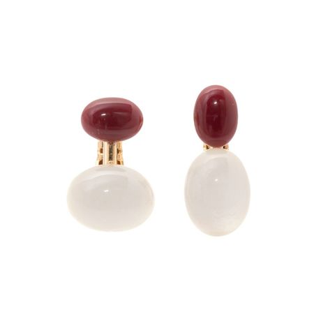 ピアス イヤリング レディース オーバル バイカラー カラーストーン キレイ色 スタッド ネジ式 レッド cream dot ゆうパケット [レッド_イヤリング]
