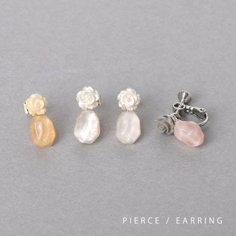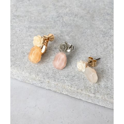 フラワー×ストーンのピアス/イヤリング。繊細なローズモチーフとクリアにきらめくストーンが彩りと華やかさをプラス。さりげない存在感と上品なデザインが、デイリーにも取り入れやすいアイテムです。