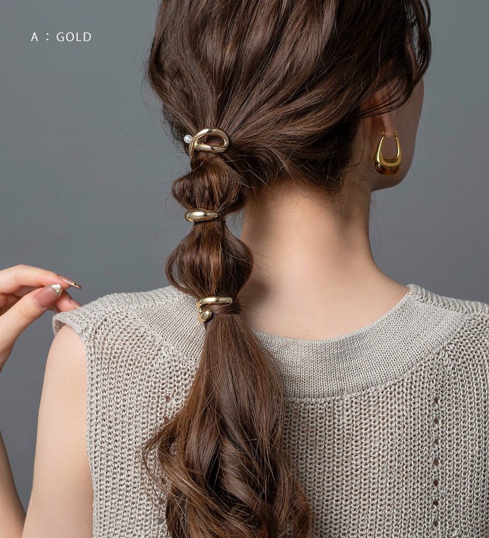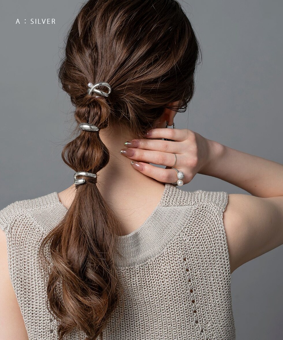 クロスとオーバルの2種類から選べる3セットポニーフック。編み下ろしや玉ねぎアレンジに飾るだけで旬のヘアが完成します。それぞれニュアンスのあるデザインなので、単品使いも◎これひとつでぐっとコーデの幅が広がりそう。