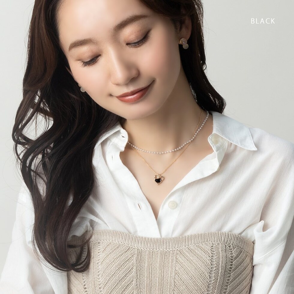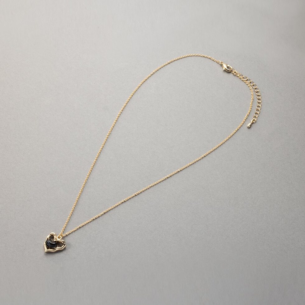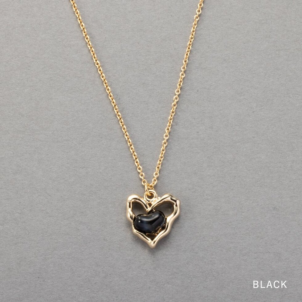 ネックレス レディース 歪 ハート フレーム メタル ぷっくり カラーストーン ブラック cream dot ゆうパケット [ブラック_ワンサイズ]