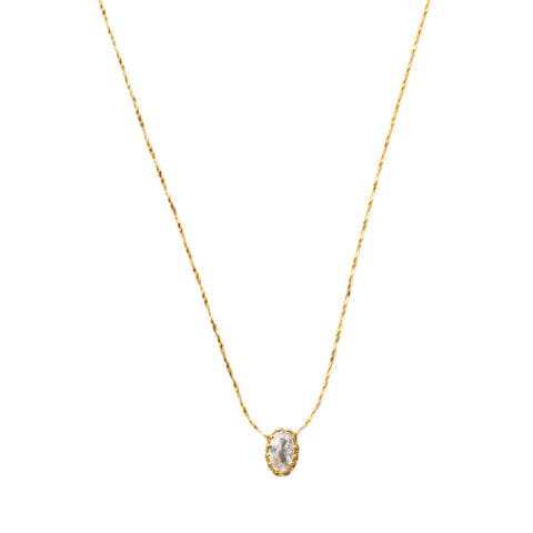 キラキラ煌めく極小ビジューの華奢ネックレス。さりげない存在感を放つミニマムなモチーフと、肌にしっとりと馴染むベネチアンチェーンがデコルテを洗練された印象に導くスキンジュエリー。シンプルデザインだからデイリーに活躍しそう。