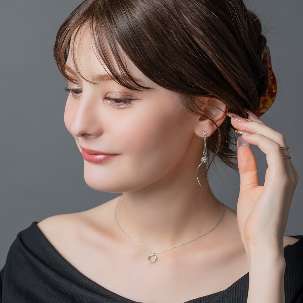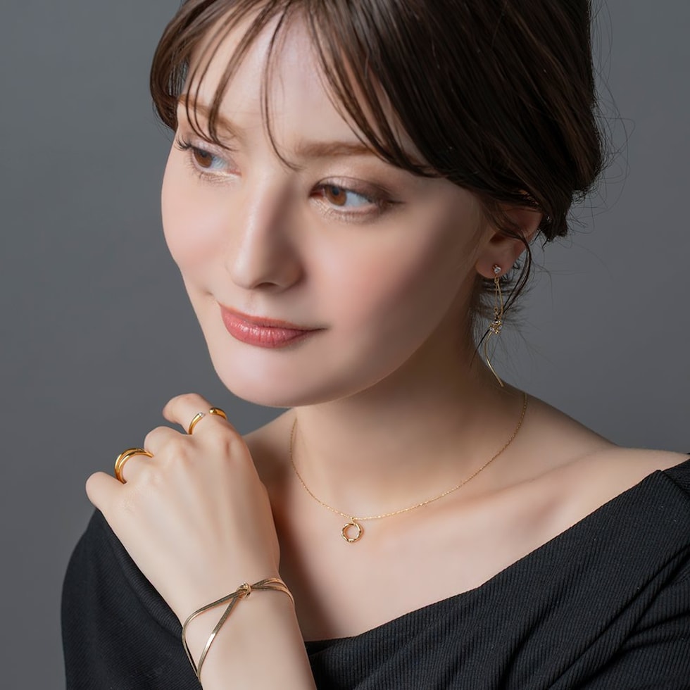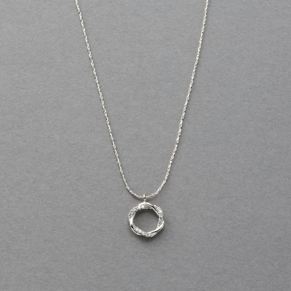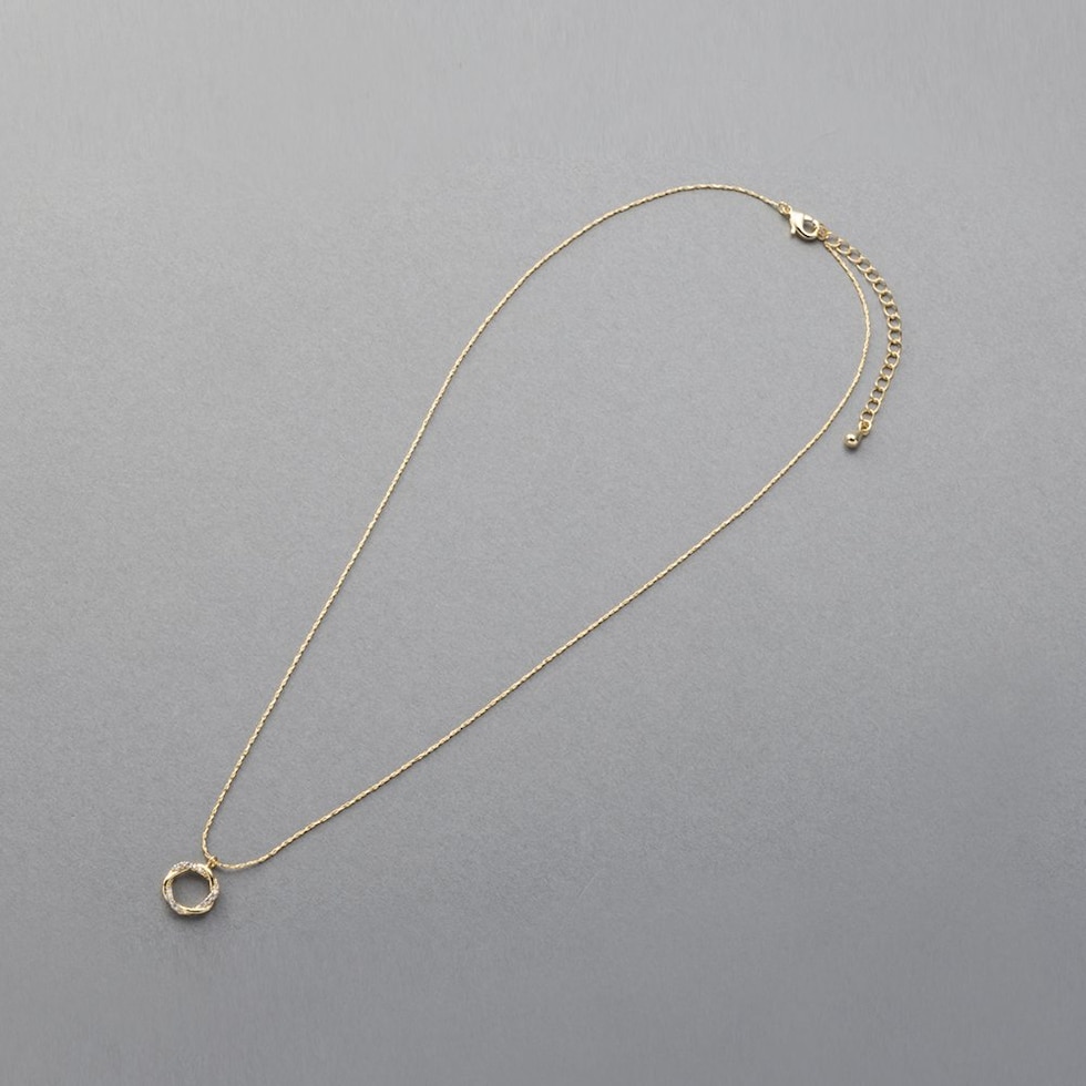 プレーンメタルとビジューラインをツイストさせたようなデザインのネックレス。華奢なチェーンと煌めくビジューが大人っぽく上品な印象◎デコルテを美しく引き立たせてくれるデザインで、流行に左右されず長くご愛用いただけます
