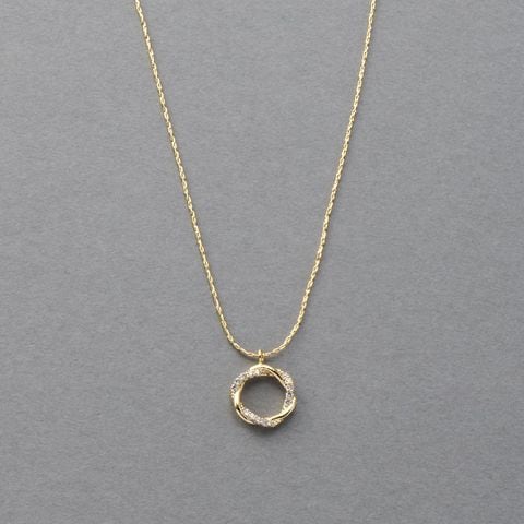 プレーンメタルとビジューラインをツイストさせたようなデザインのネックレス。華奢なチェーンと煌めくビジューが大人っぽく上品な印象◎デコルテを美しく引き立たせてくれるデザインで、流行に左右されず長くご愛用いただけます