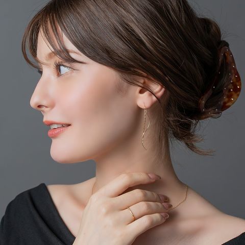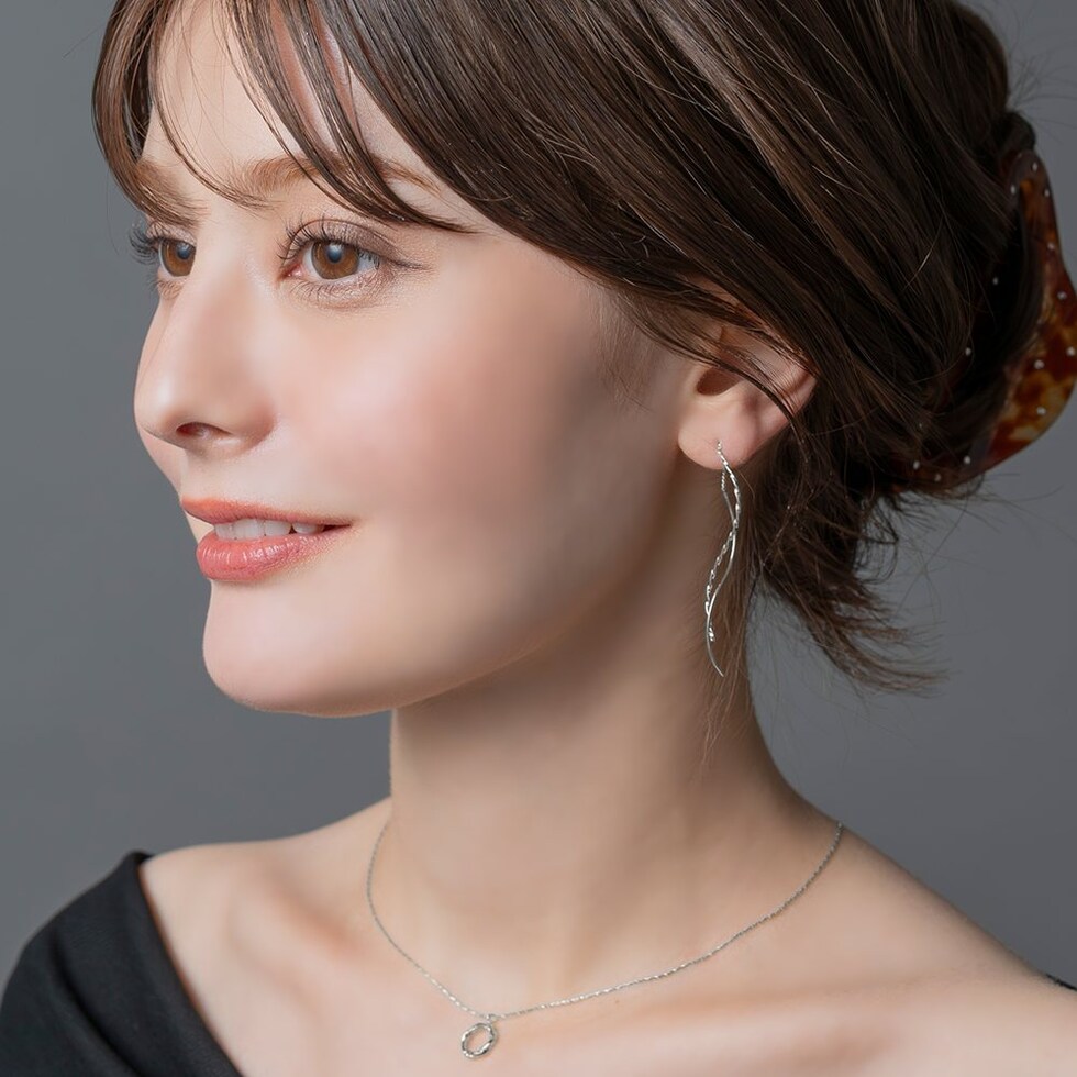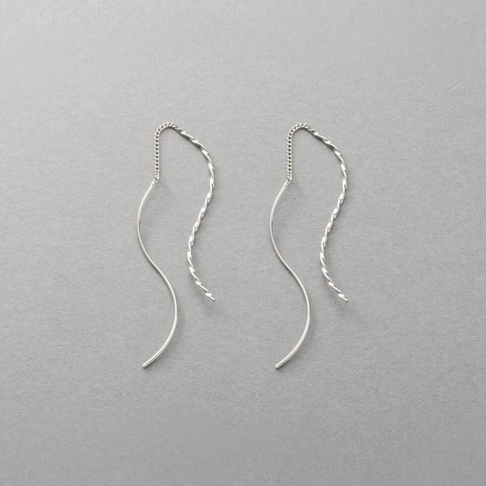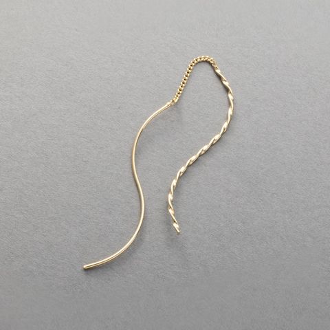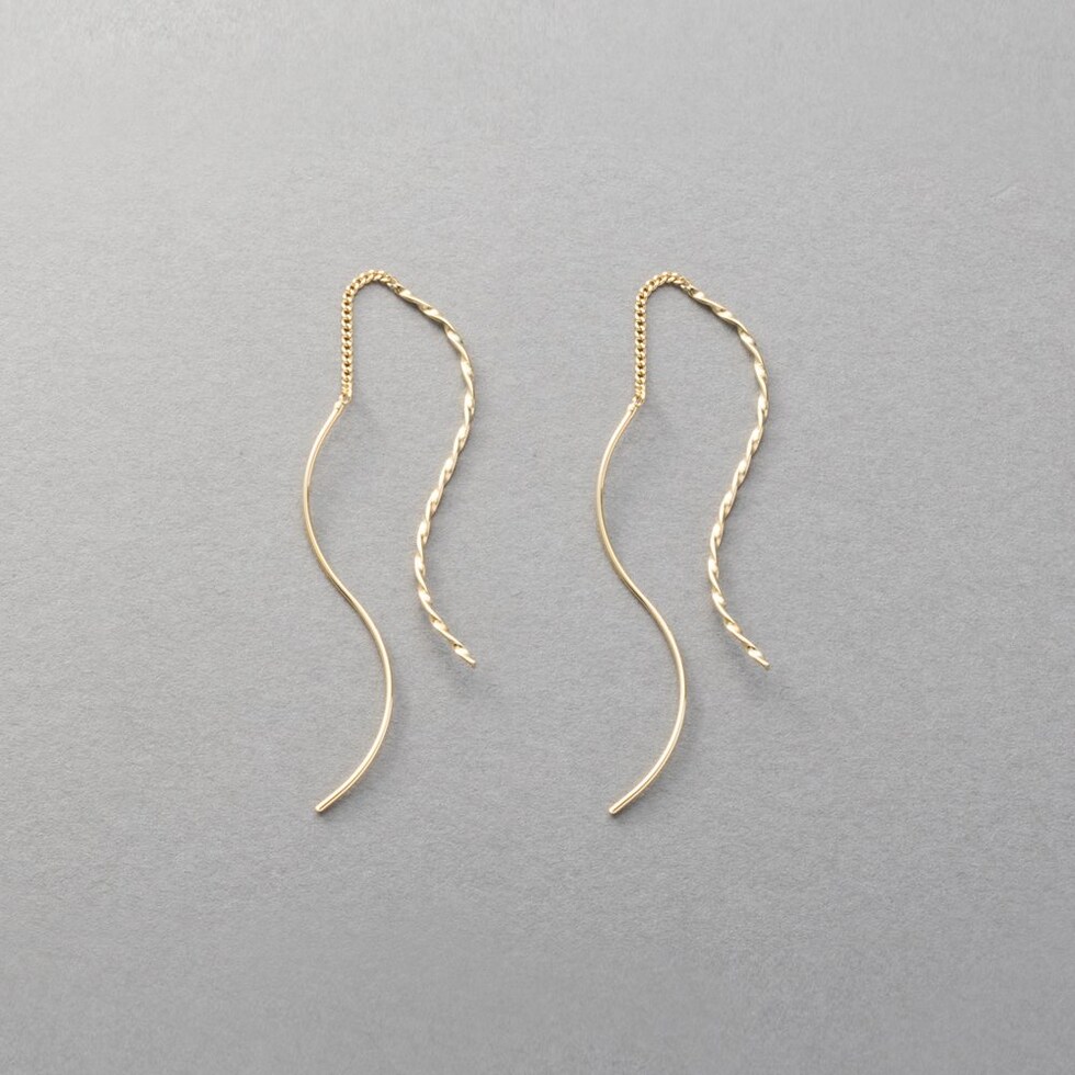 プレーンとツイストのウェーブラインを華奢なチェーンで連ねたアメリカンピアス。柔らかな曲線の異なるモチーフがそれぞれ揺れて煌めき、お顔周りを華やかに◎上品な輝きがモダンで洗練された印象に仕上げてくれるアイテムです。