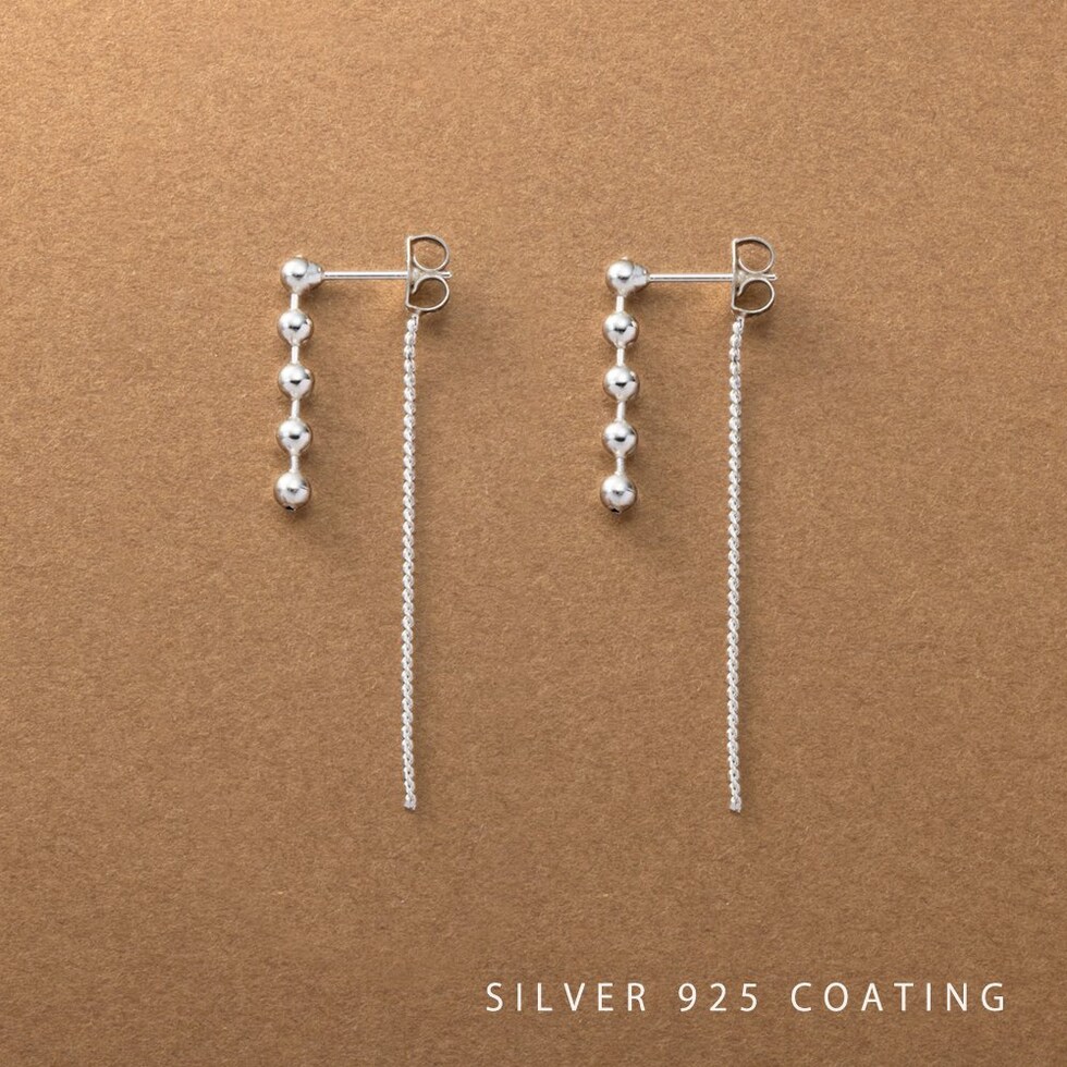 ピアス レディース SV925コーティング バックキャッチ ボールチェーン 揺れる メタルボール cream dot ゆうパケット [シルバー_ピアス]