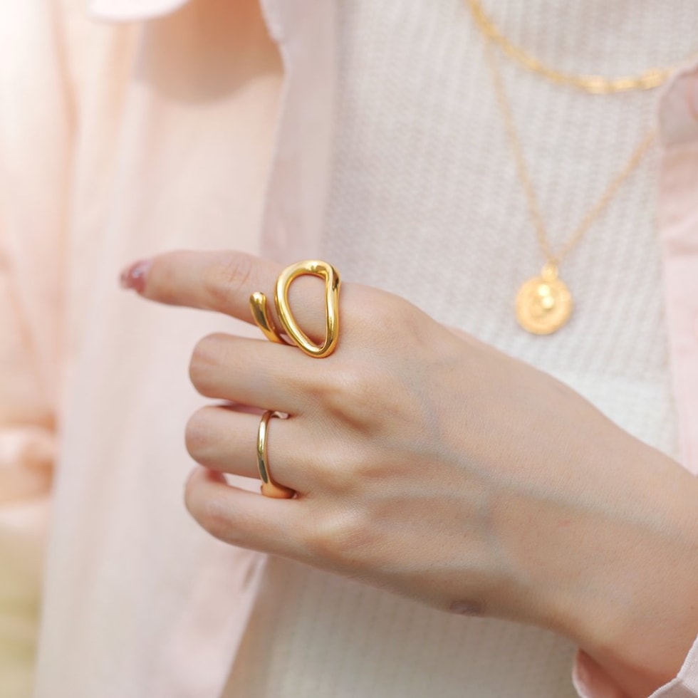 変形オーバルラインのステンレス製リング。大胆にカーブする艶やかなオーバルラインがシンボリックなデザイン◎これひとつでコーデを今っぽくアップデートしてくれるオススメのアイテムです。