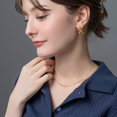 ネックレス ステンレス 金属アレルギー サージカルステンレス レディース つけっぱなし ツイスト 平 スネークチェーン ステーション cream dot ゆうパケット [ゴールド_ワンサイズ]