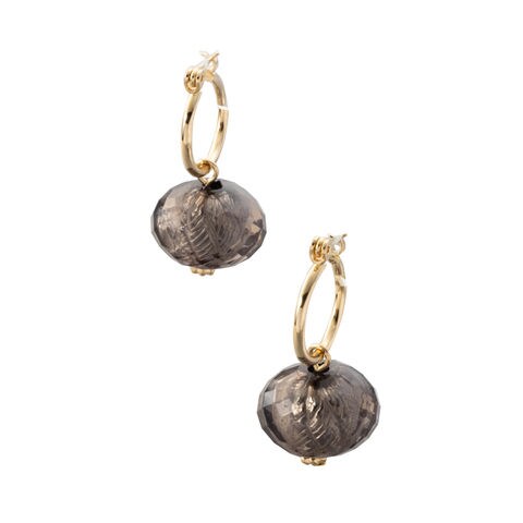 繊細な模様が浮かび上がった多面カットクリアストーンのキャッチレスフープピアス。耳元で揺らめくモチーフと個性的なフォルムが存在感際立つアイテム。顔周りを明るく華やかに演出してくれるので、スタイリングのアクセントにオススメ◎