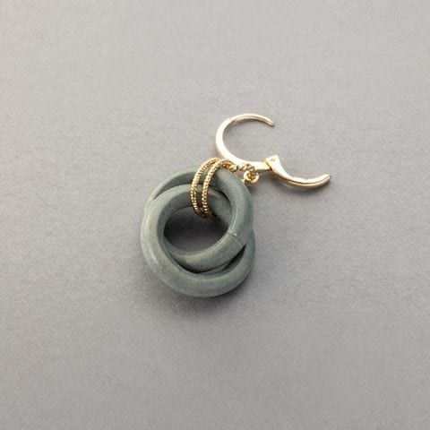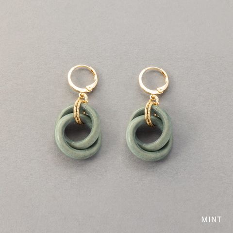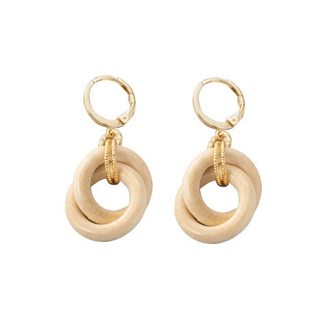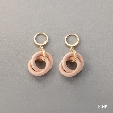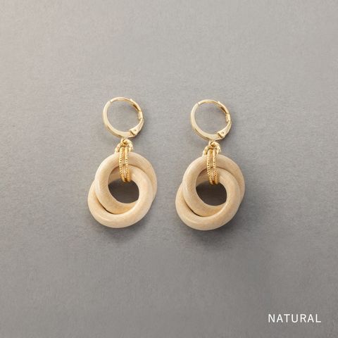 2つの輪が重なり合ったウッド素材の開閉式キャッチレスピアス。繊細に煌めくメタルリングとニュアンスカラーのウッドが大人スタイルにも取り入れやすいアイテム◎耳元で揺らめくモチーフがシンプルコーデのアクセントにもぴったりです。
