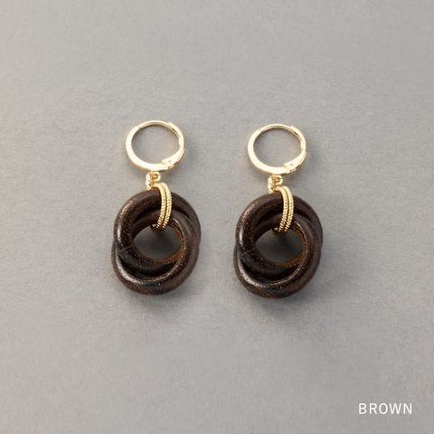 ピアス レディース キャッチレス 中折れ 開閉式 ワンタッチ ウッドリング 2連 揺れる 輪 メタル リング ブラウン cream dot ゆうパケット [ナチュラル_ピアス]
