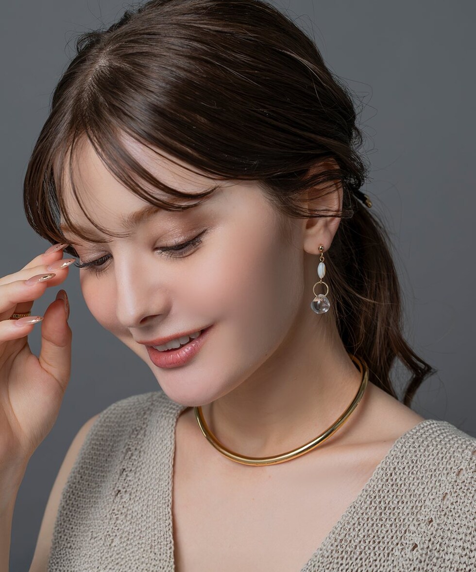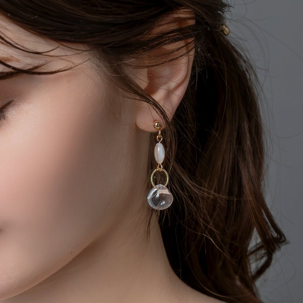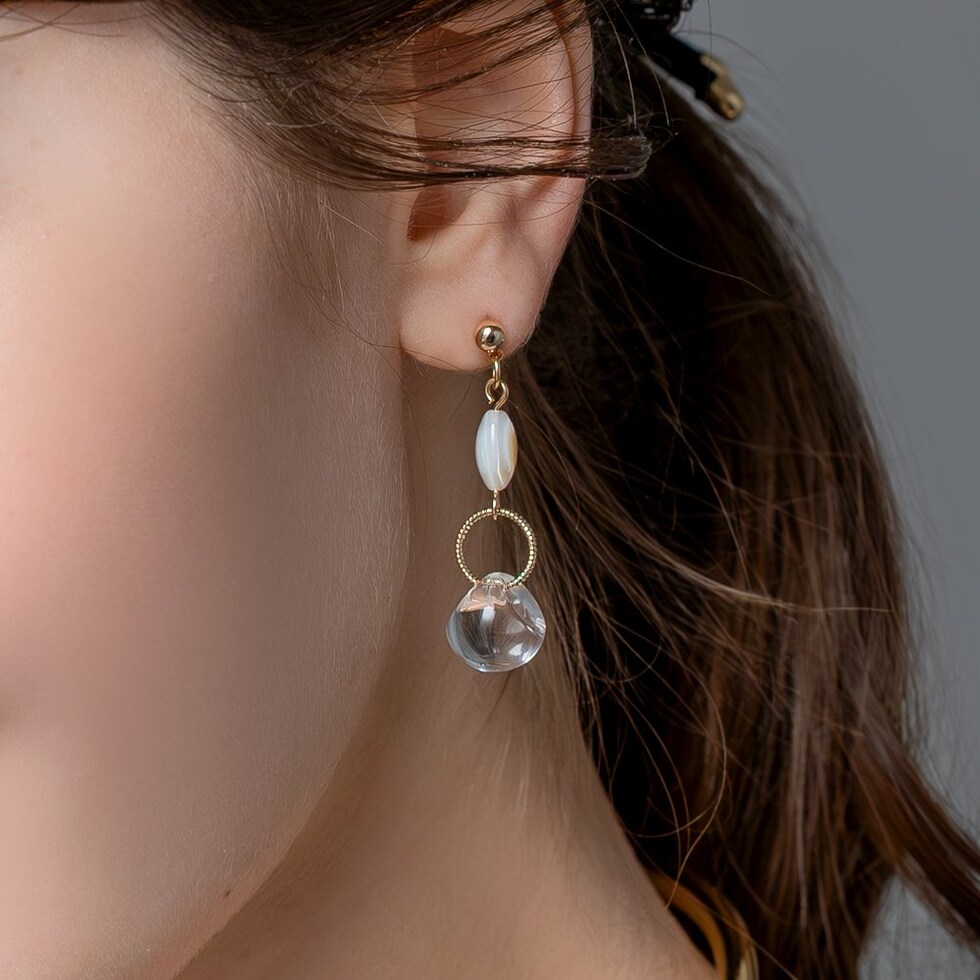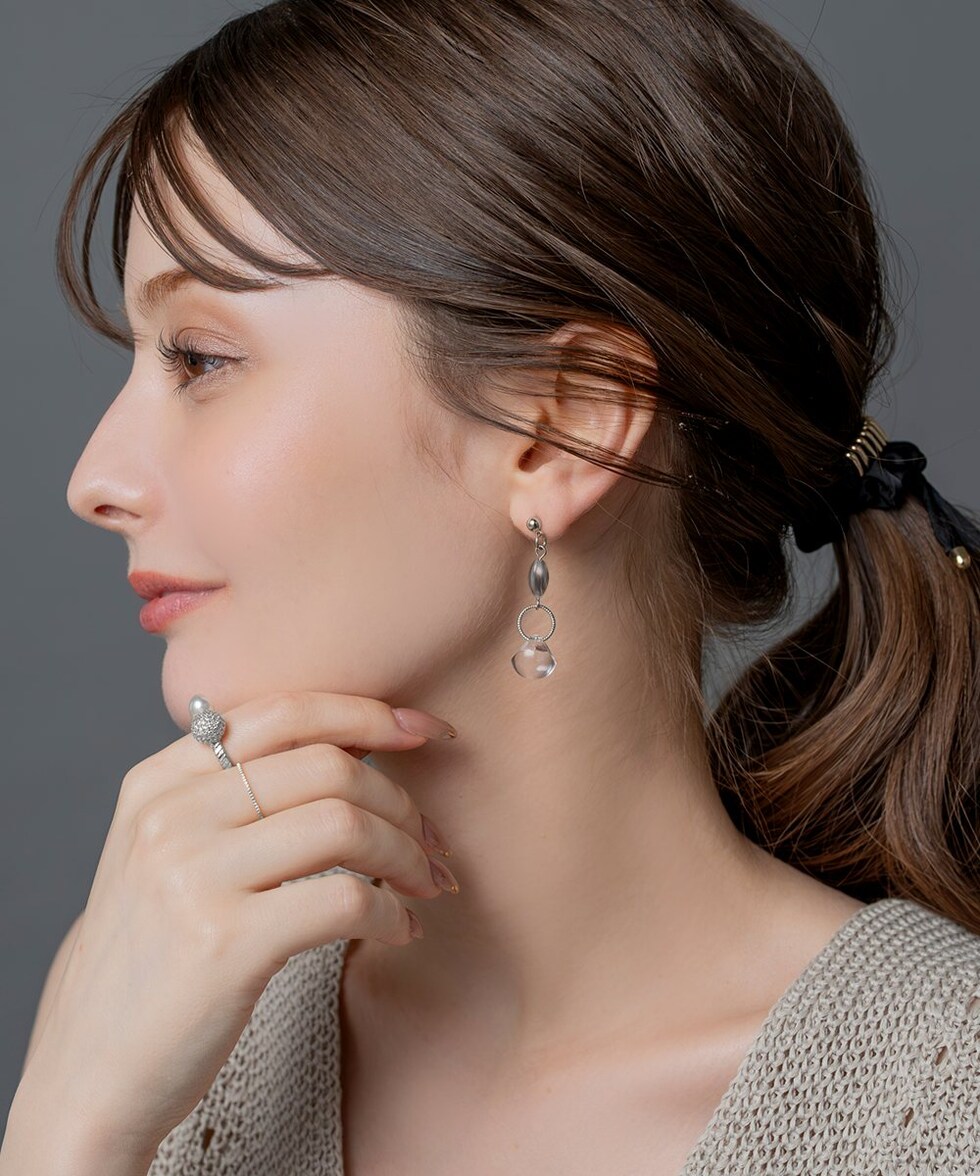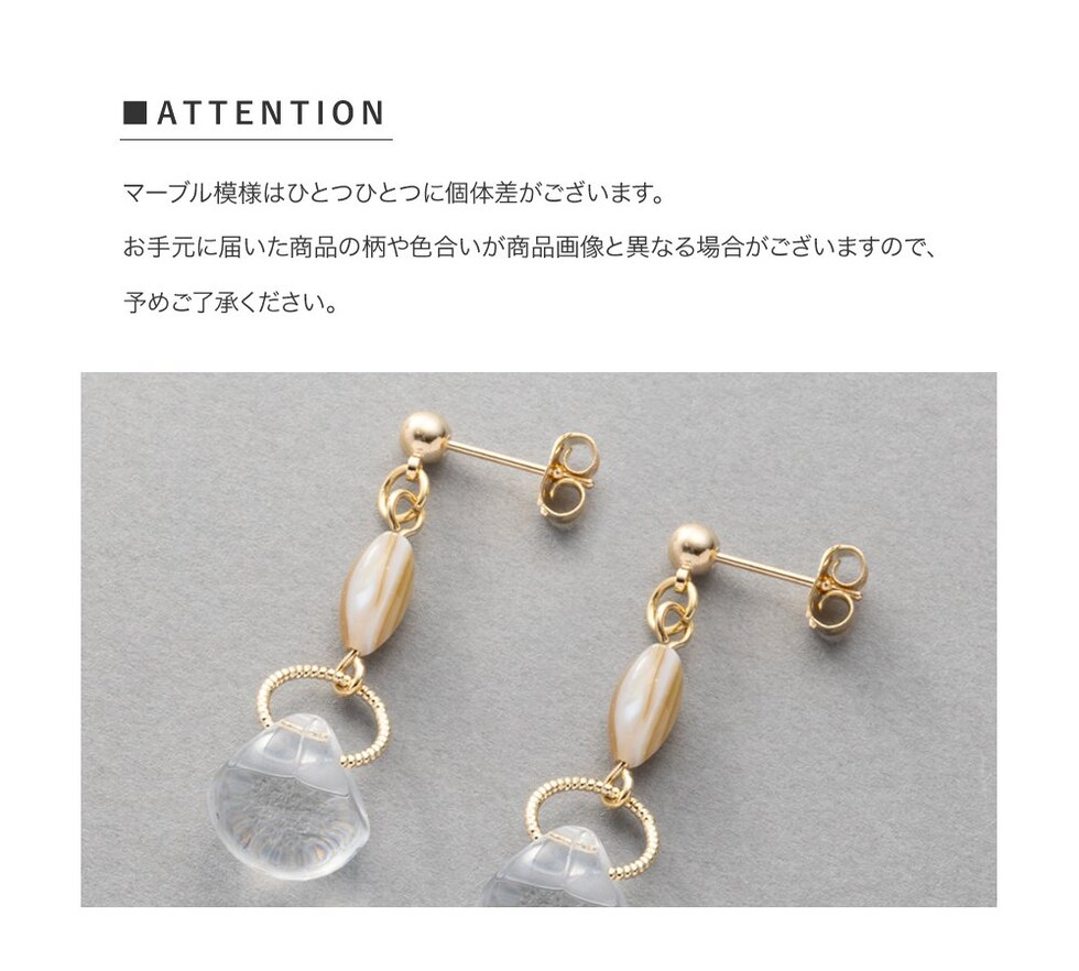 マーブルとクリアカラーがさりげなく揺れるピアス。大人に似合う絶妙な色合いとデザインが普段使いしやすいひと品。シーズンライクな雰囲気を楽しめるオススメのアイテムです。