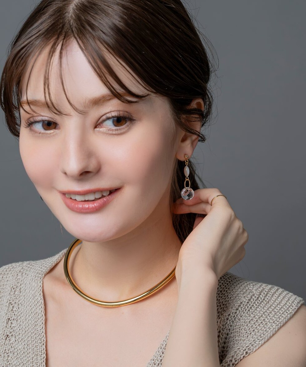 ピアス レディース クリアストーン マーブル 揺れる メタル サークル リング クリアカラー ボール スタッド cream dot ゆうパケット [シルバー_ピアス]