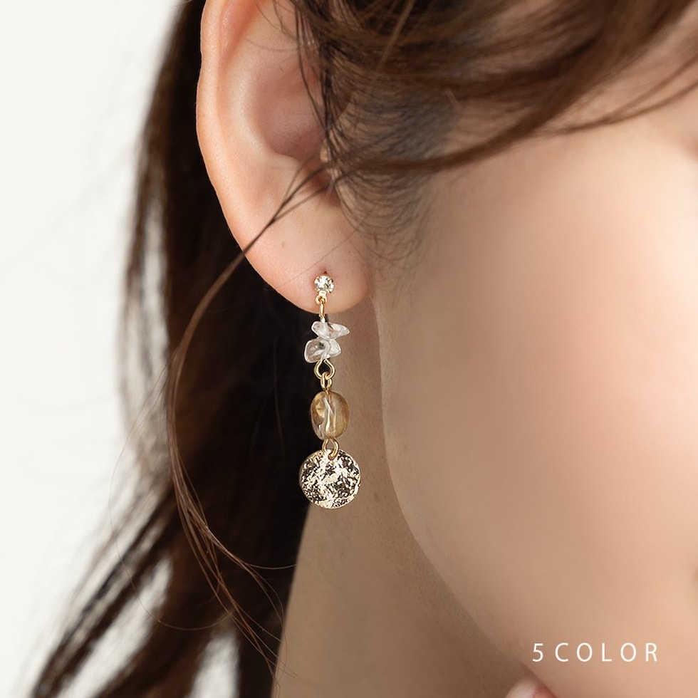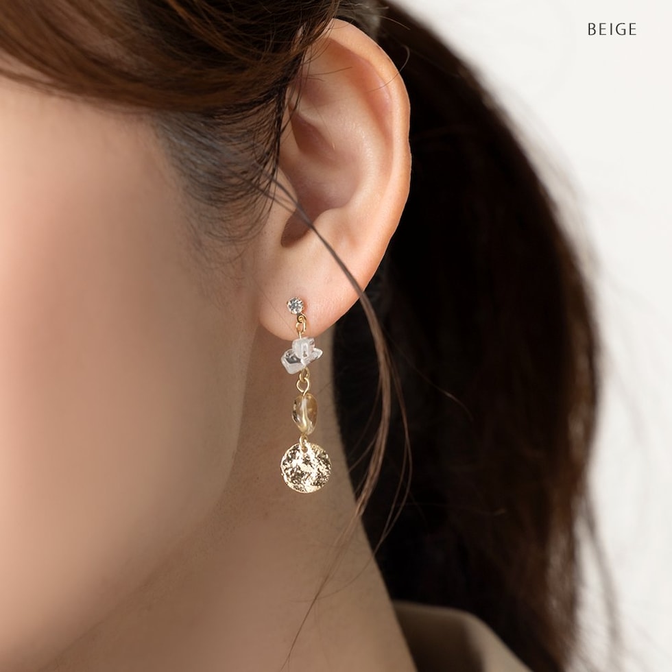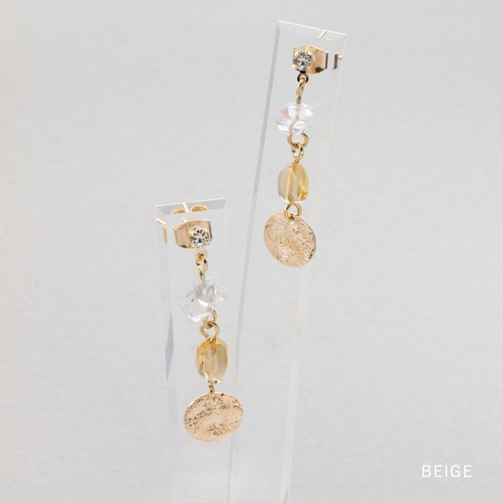 ピアス レディース 天然石 クラフト調 メタル カラーストーン ビジュー 揺れる キレイ色 オーロラ cream dot ゆうパケット [ベージュ_ピアス]