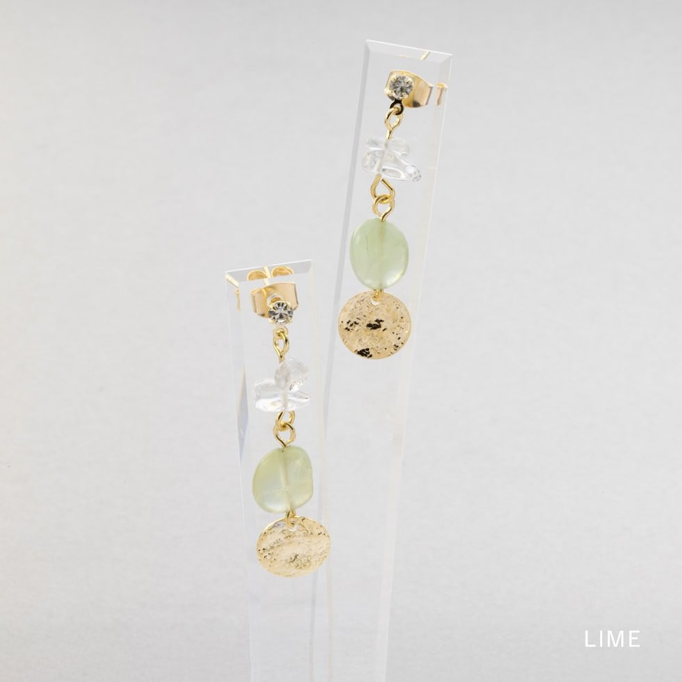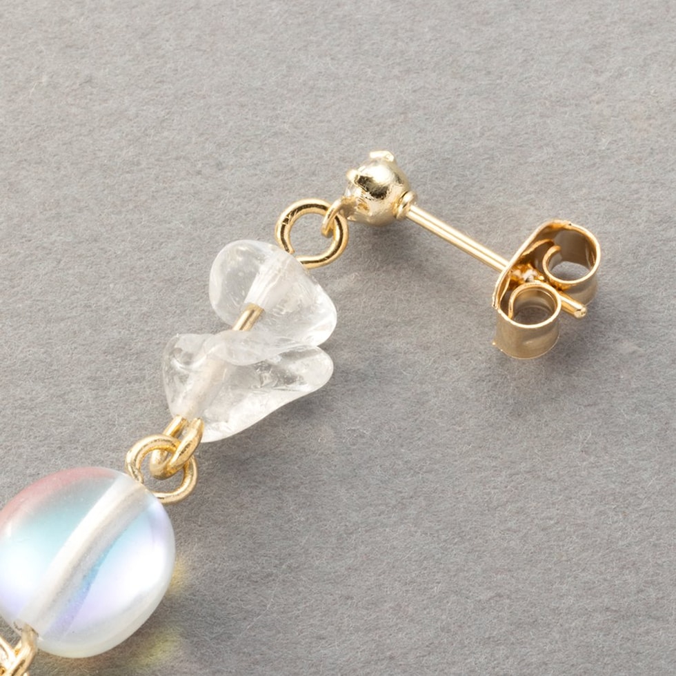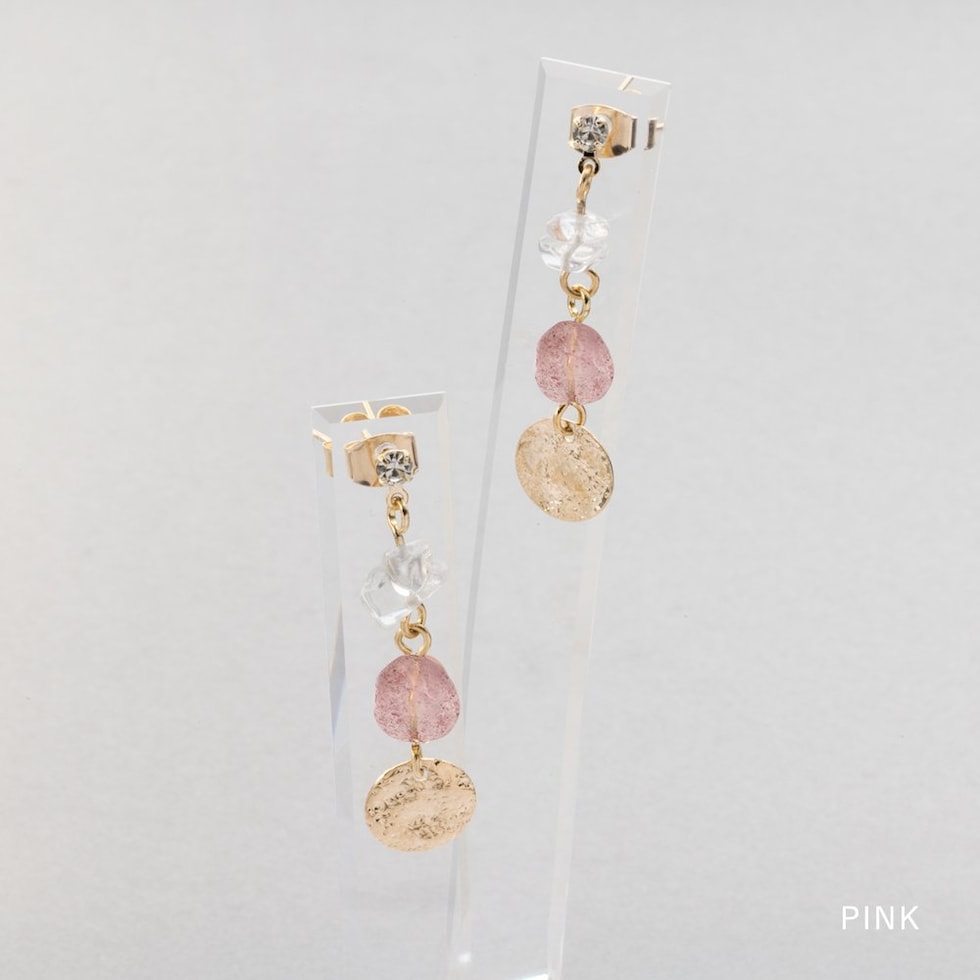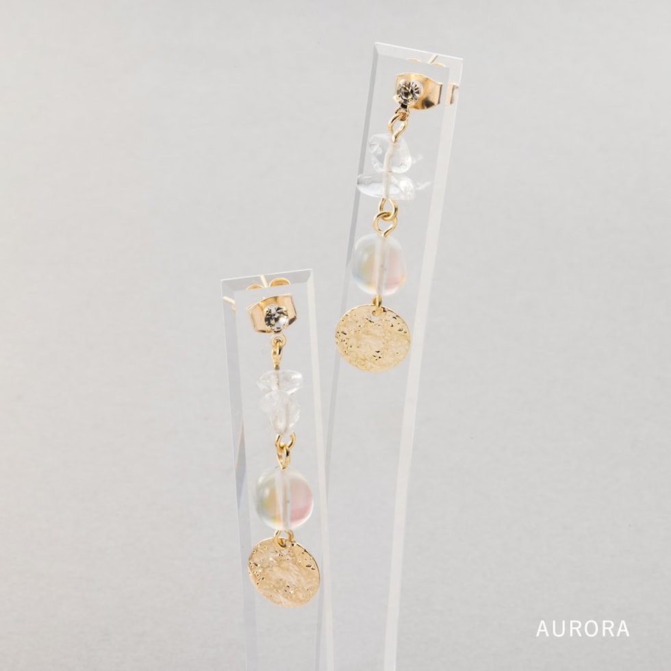 ピアス レディース 天然石 クラフト調 メタル カラーストーン ビジュー 揺れる キレイ色 オーロラ cream dot ゆうパケット [ベージュ_ピアス]
