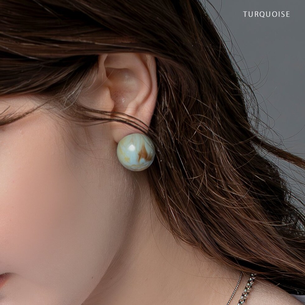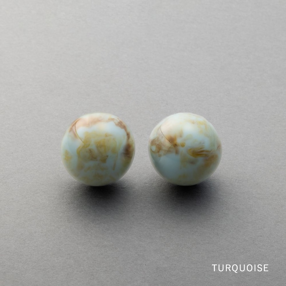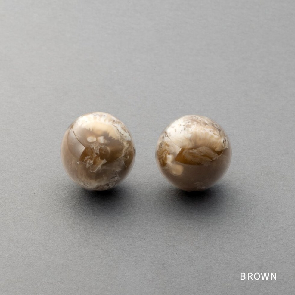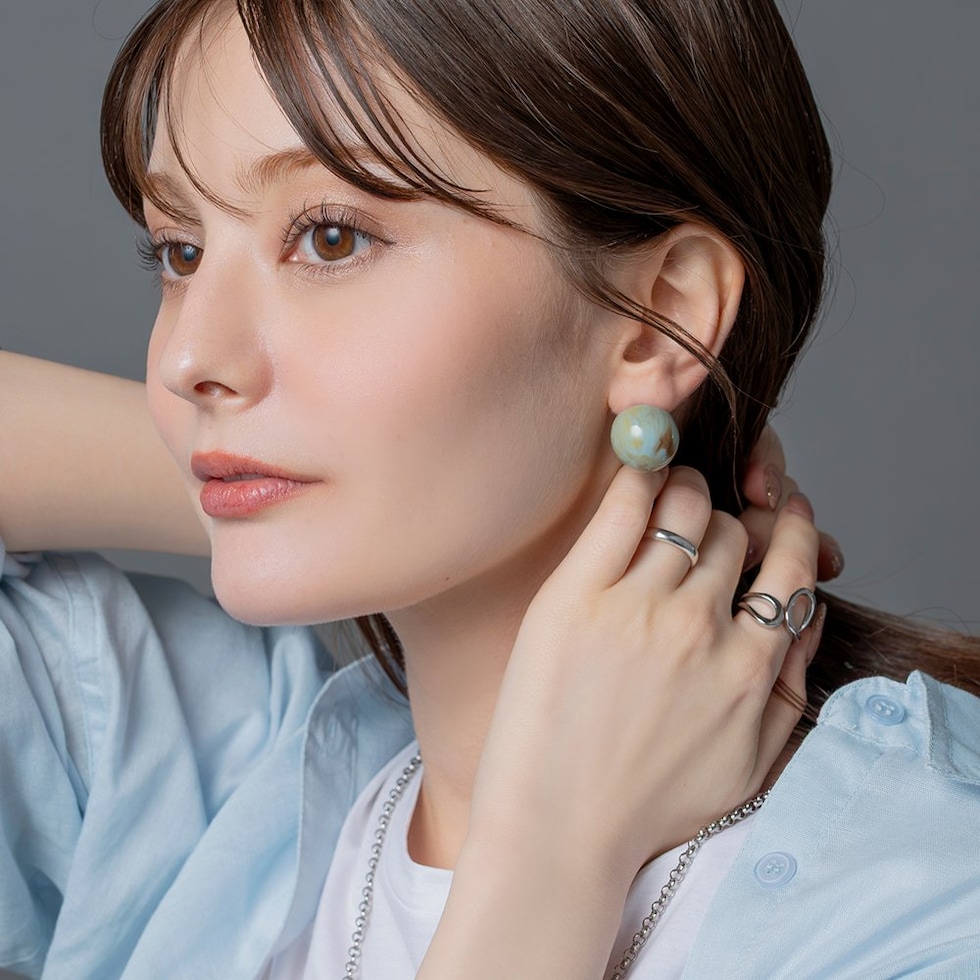 大人色マーブルのスフィアが存在感を放つピアス。見た目以上に軽い着け心地なのも嬉しいひと品。絶妙な色合いがコーデにアクセントをアクセントを添えてシーズンライクな雰囲気を演出します。