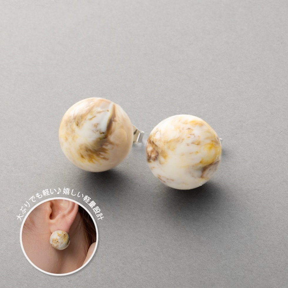 ピアス レディース マーブル スフィア ホマイカ 色 軽量 大きめ ブラウン cream dot ゆうパケット [ブラウン_ピアス]