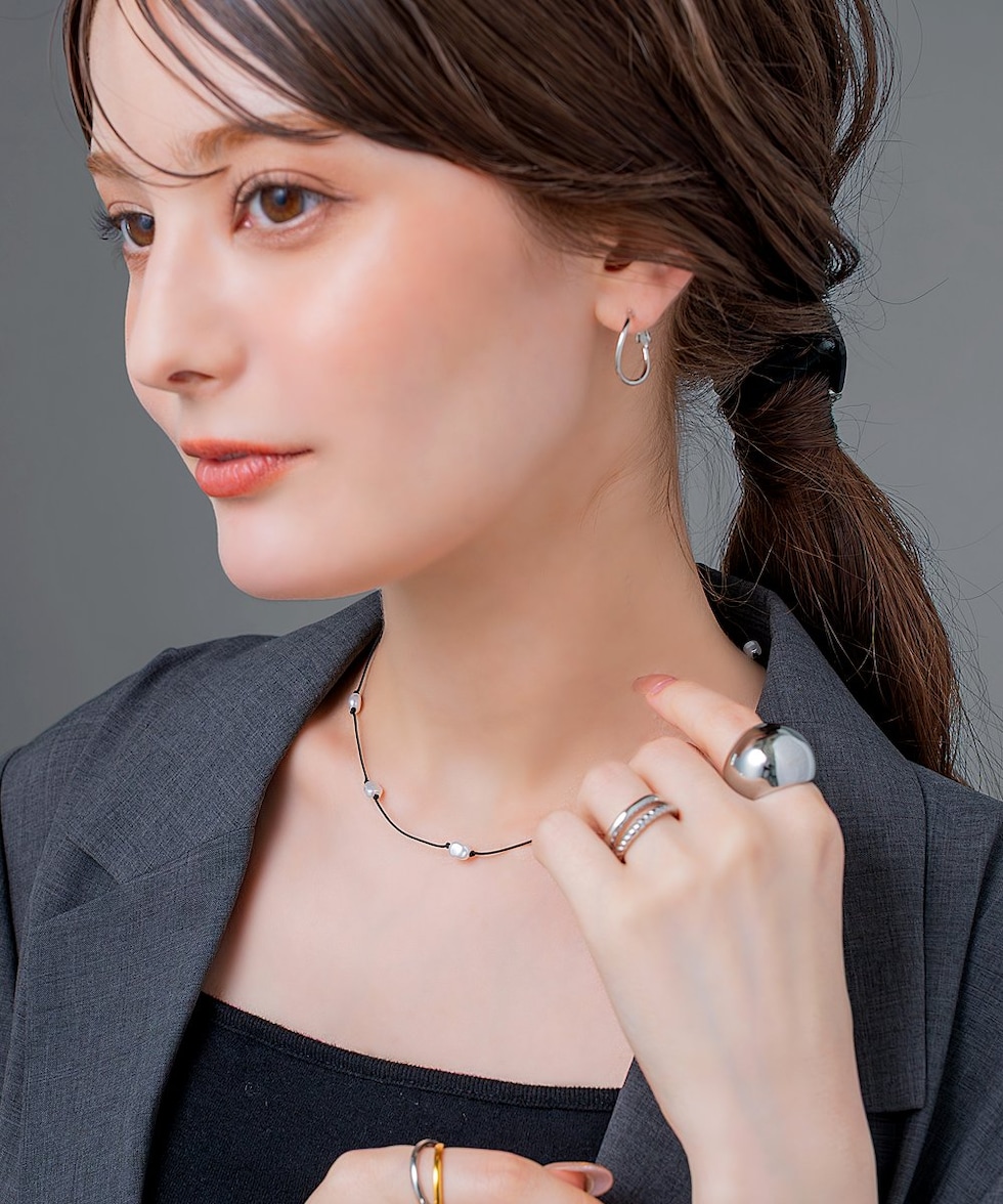 ピアス レディース キャッチレス 開閉式 ワンタッチ フープ ウェーブライン メタル 大きめ cream dot ゆうパケット [シルバー_ピアス]
