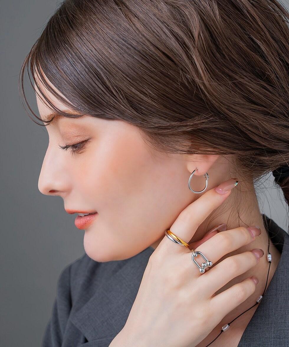 ウェーブラインが魅力の個性派フープピアス。角度によって見え方が変わるユニークなシルエットで、シンプルながらもさりげなくニュアンスの効いたデザイン。オンオフ問わず使える万能アイテムです。
