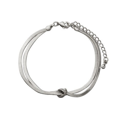 ブレスレット レディース ノットデザイン スネークチェーン 2連 結び目 メタル 艶 レイヤード風 cream dot ゆうパケット [シルバー_ワンサイズ]