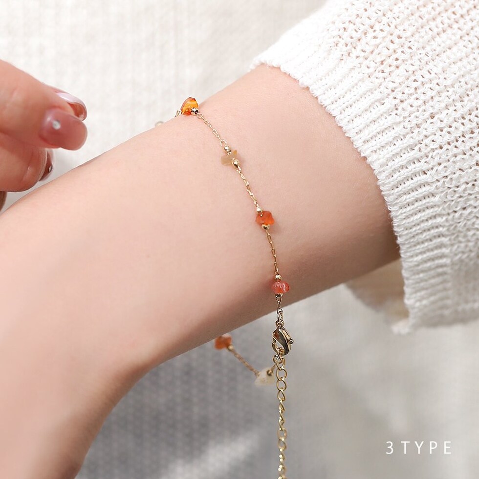 ブレスレット レディース チェーン 天然石 カラーストーン ステーション 色石 キレイ色 3タイプ マルチカラー cream dot ゆうパケット [Cタイプ_ワンサイズ]