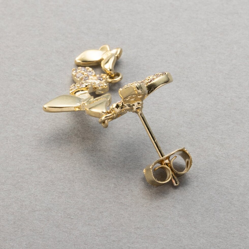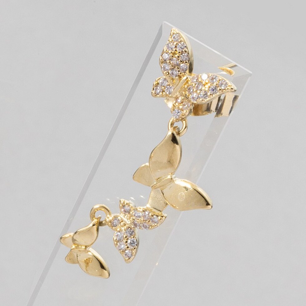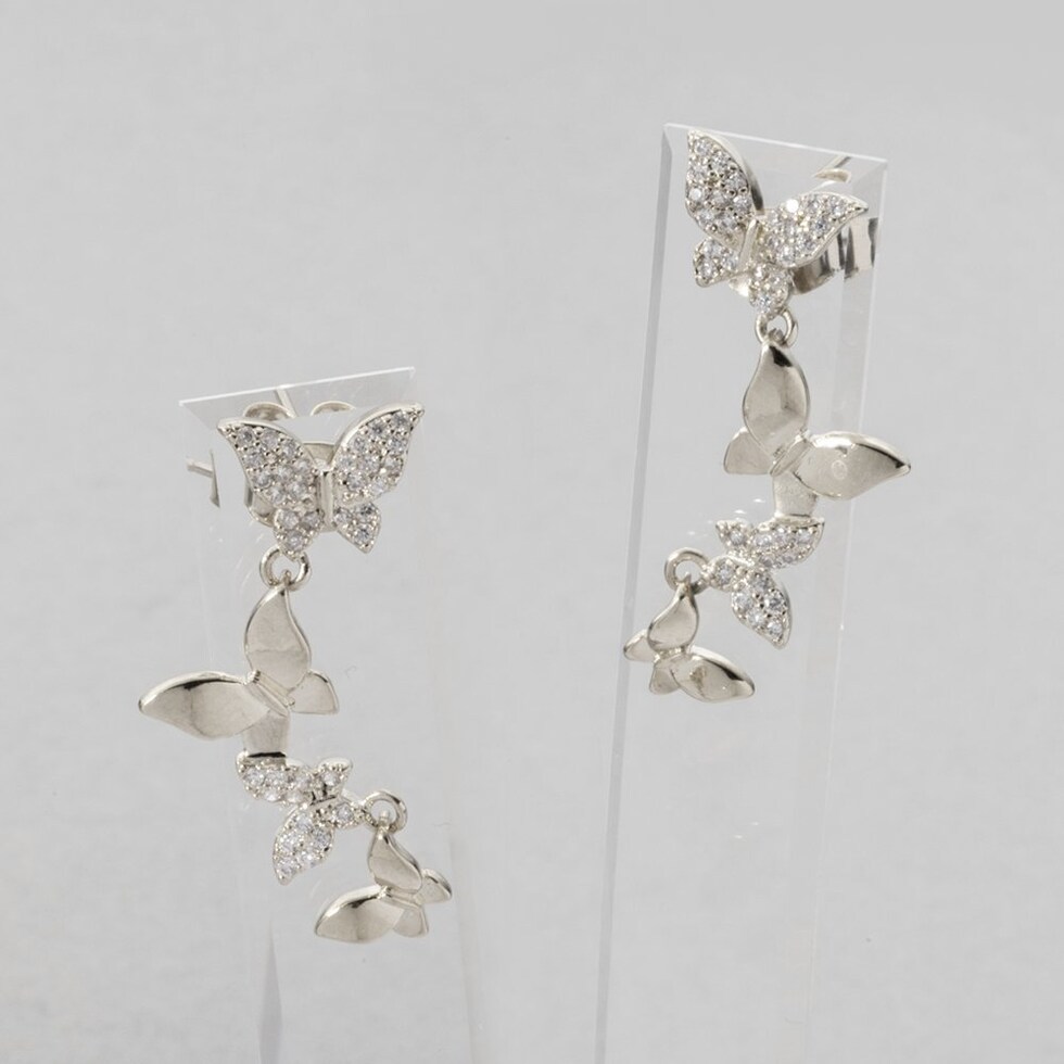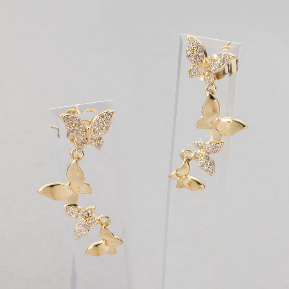 ピアス レディース 蝶 バタフライ パヴェ ビジュー 4連 メタル 揺れる スタッド cream dot ゆうパケット [シルバー_ピアス]
