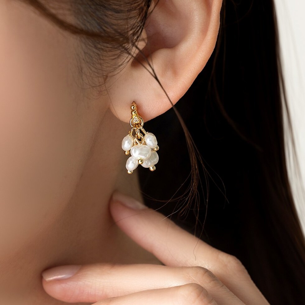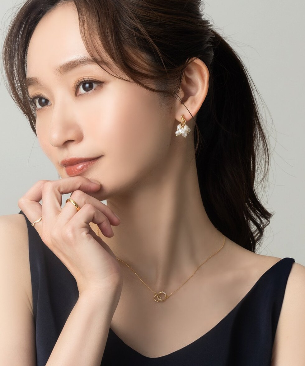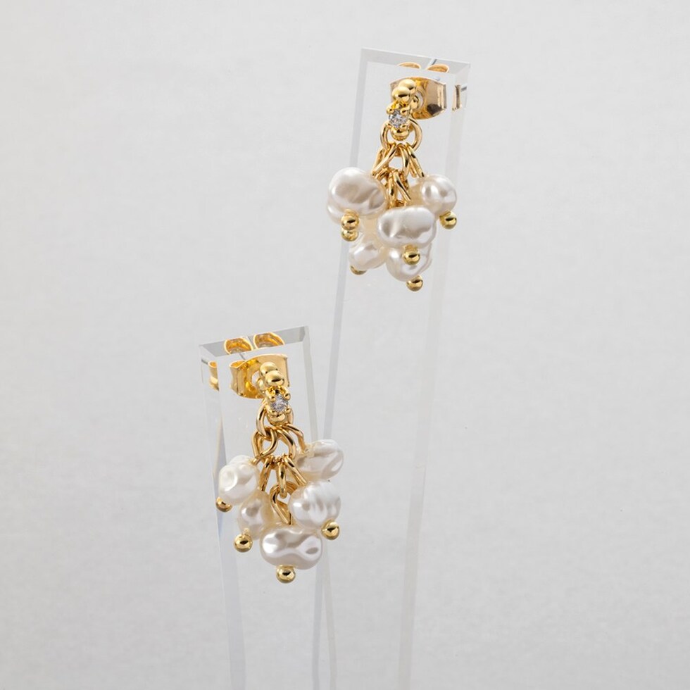 ニュアンス感たっぷりな変形パールのピアス。パールを集めたフォルムがさりげなく揺れて艶めくひと品。小粒なビジューや細部にもこだわったデザインが大人に似合うオススメのアイテムです。