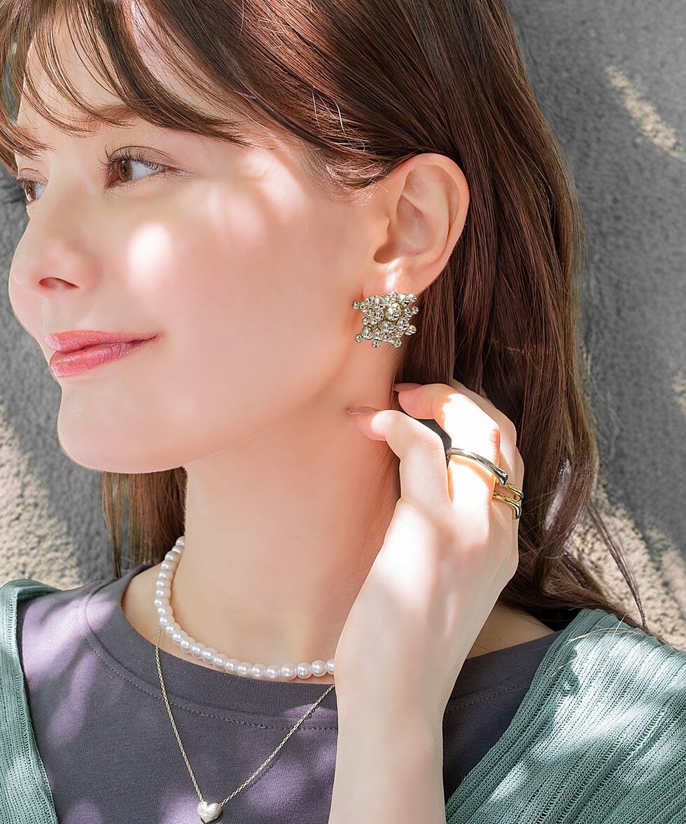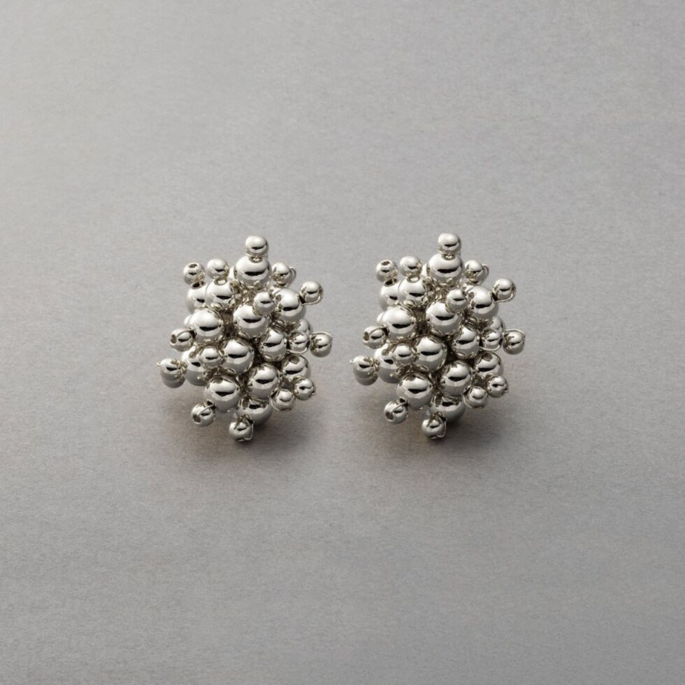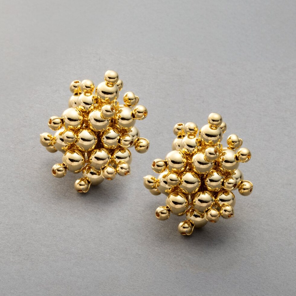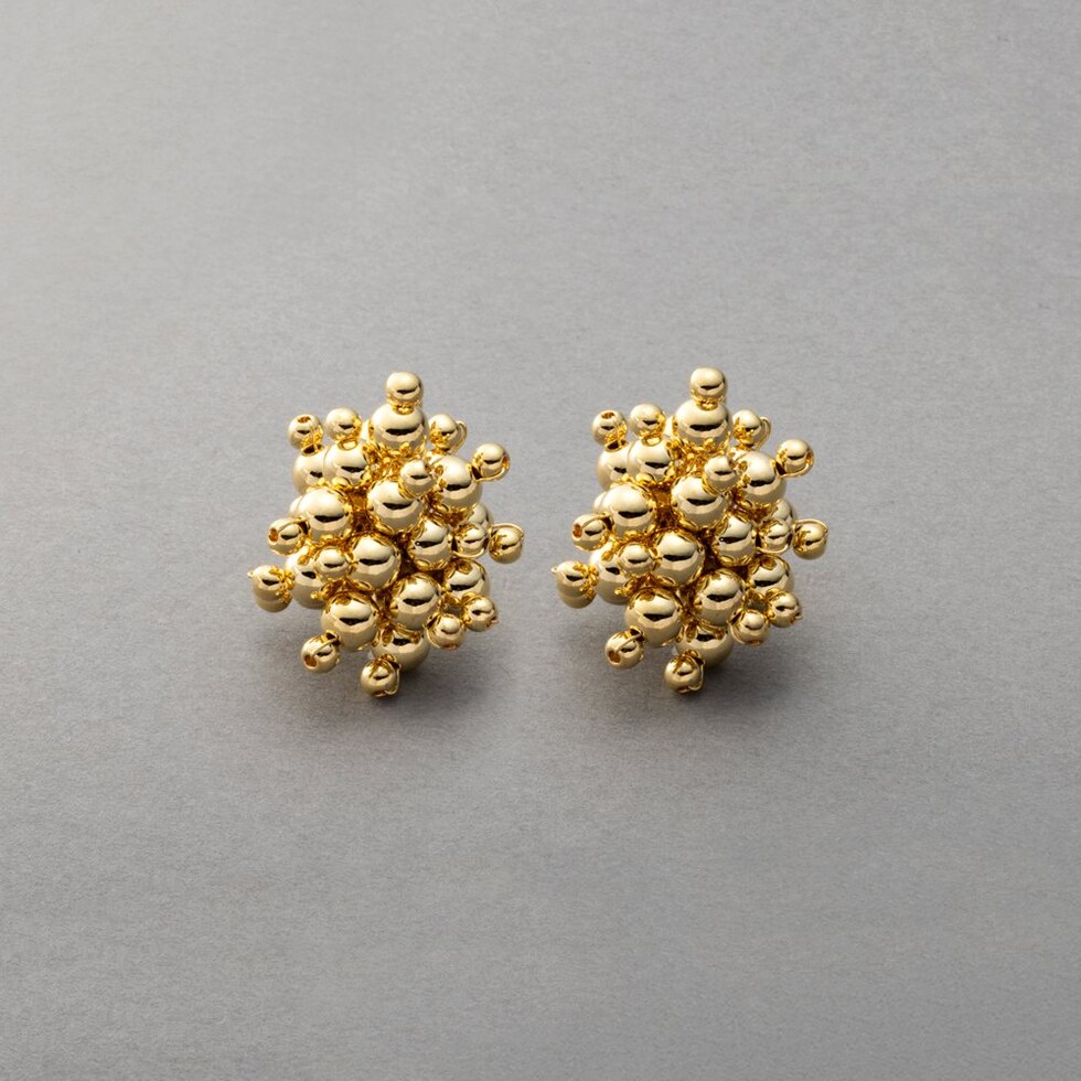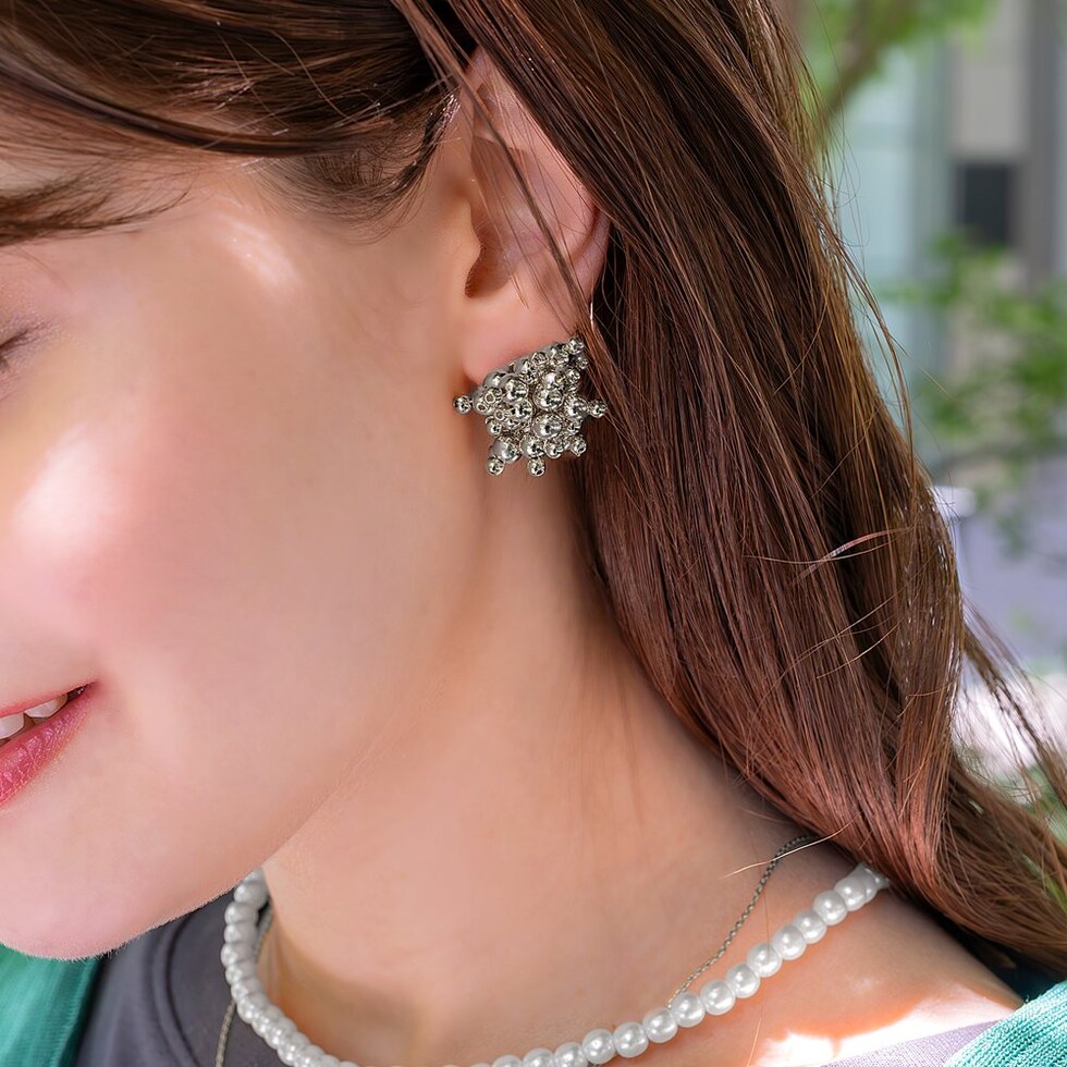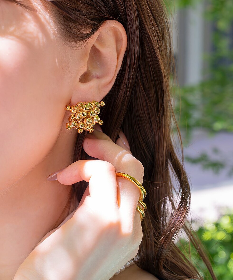 ニュアンスたっぷりメタルボールのバブルピアス。艶めくメタルボールが重なりあったモダンなデザイン。程よい存在感だからデイリーにも使いやすい◎コーデがどこか物足りないときのアクセント使いにもオススメなアイテムです。