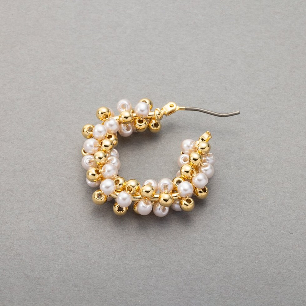 ピアス レディース キャッチレス 開閉式 ワンタッチ フープ 小粒 パール メタルビーズ ツイスト つぶつぶ cream dot ゆうパケット [ゴールド_ピアス]