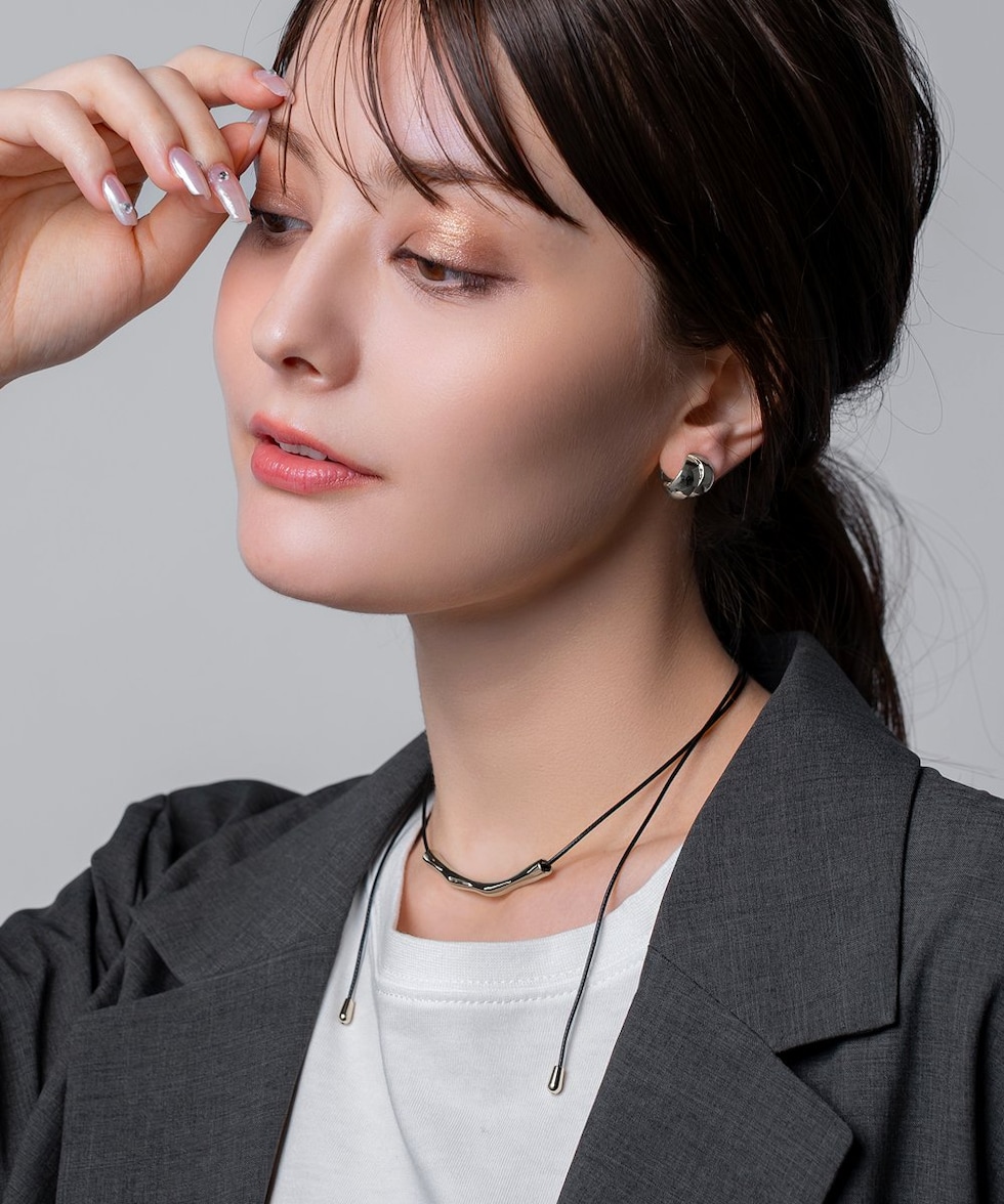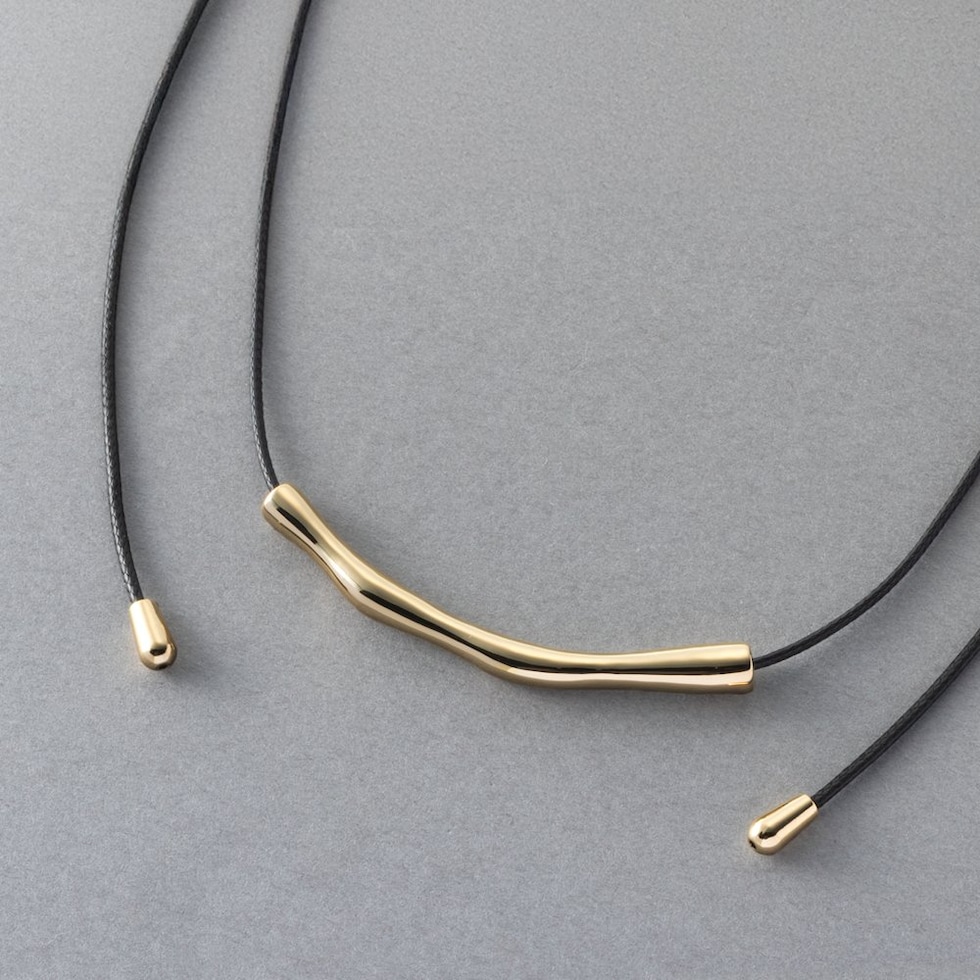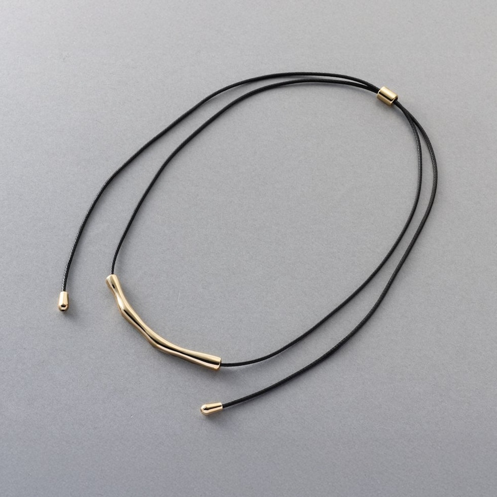 こなれ感漂うメタルパイプのコードネックレス。ニュアンスメタルと細めのレザーコードがトレンド感溢れる印象に。後ろを長くしてネックレスとしてもラリエットとしても使えるアレンジ自在なアイテム。気分やスタイルに合わせてお楽しみいただけます。