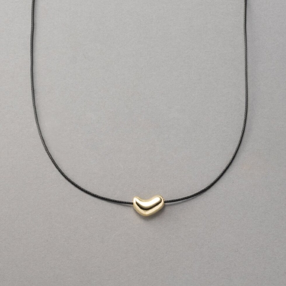 ネックレス レディース レザーコード コード PUレザー メタル ハート ぷっくり 長さ調節 ブラック cream dot ゆうパケット [ゴールド_ワンサイズ]
