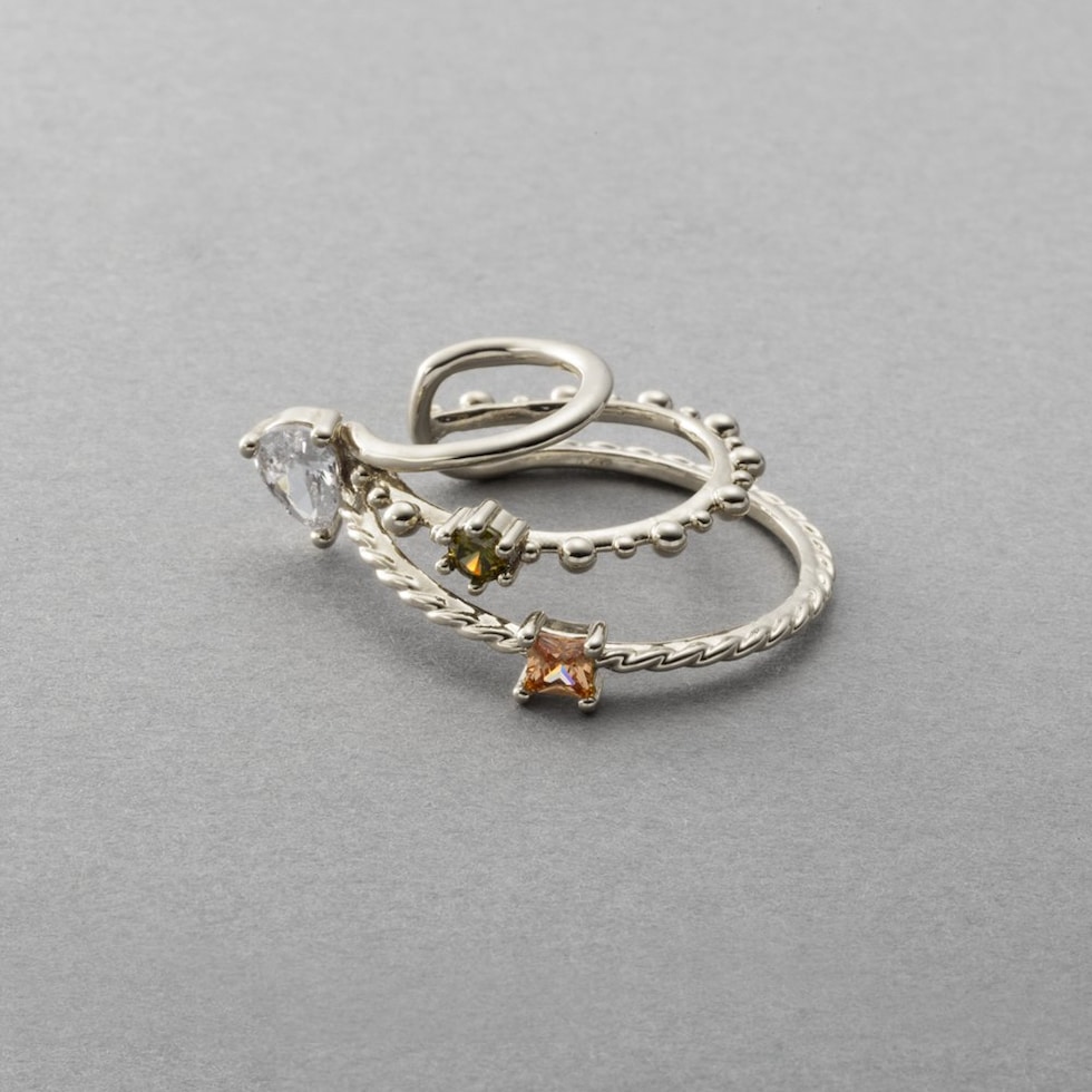 イヤーカフ レディース 3連 フープ ドロップ ビジュー カラービジューマルチカラー 雫 メタル 艶 イヤカフ 大きめ 片耳用 cream dot ゆうパケット [シルバー_ワンサイズ]