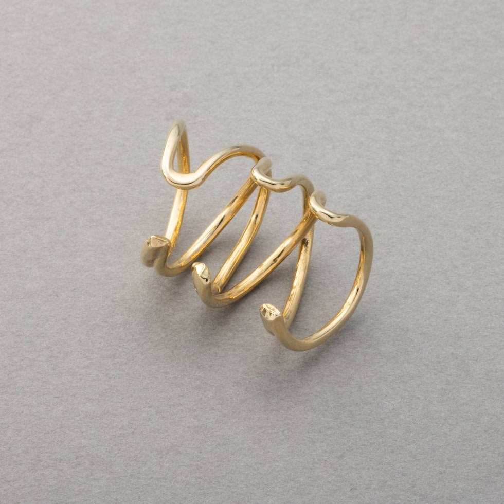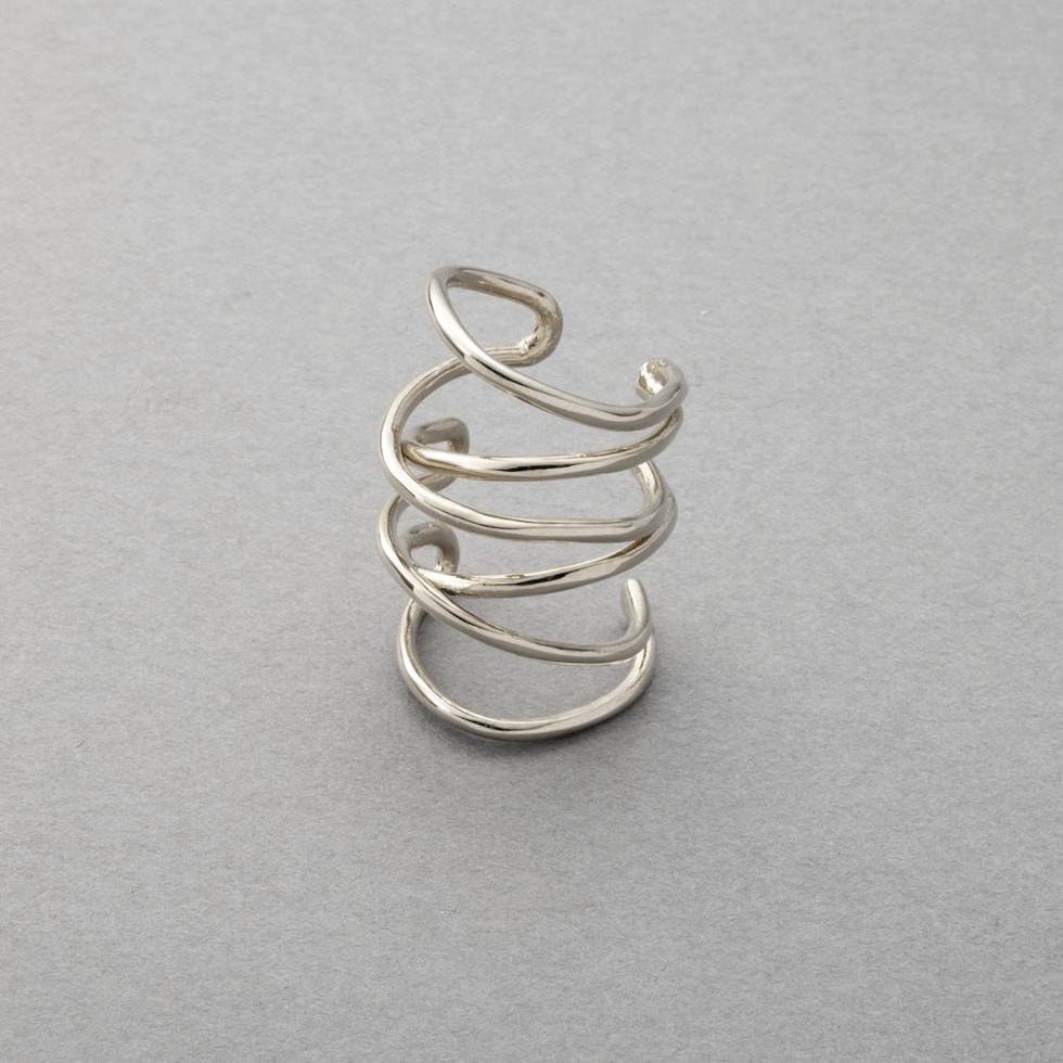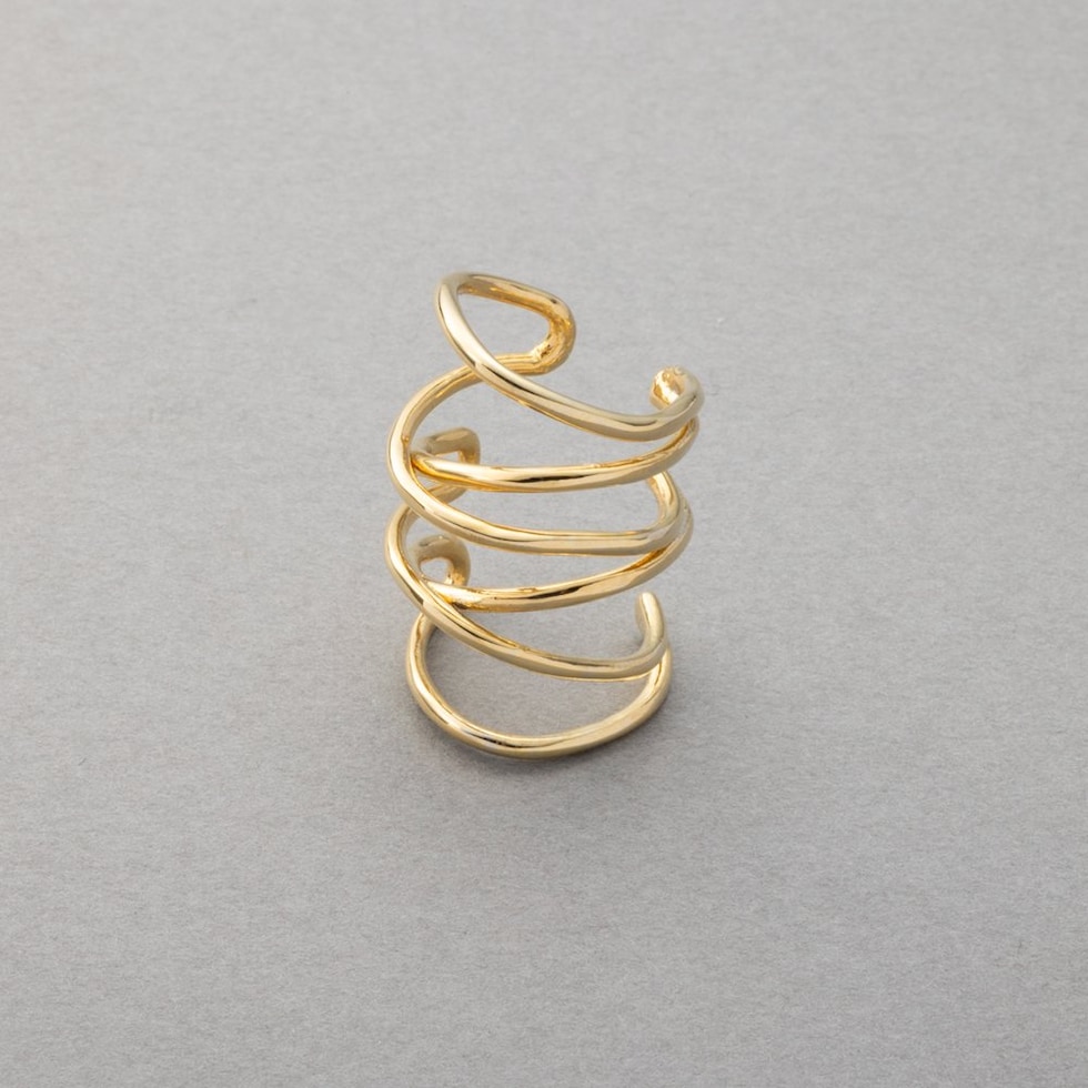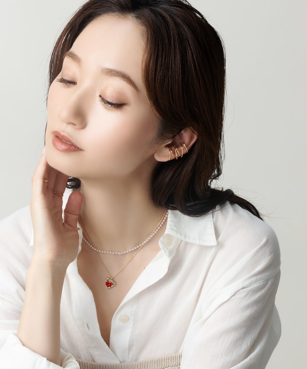 6連クロスラインのレイヤード風イヤーカフ。幾つかのフープを重ね着けしてるようにも見える贅沢な6連ラインが、シンプルながらも存在感バツグン。シンプルなカジュアルコーデに加えるだけで、こなれた大人っぽい表情に◎