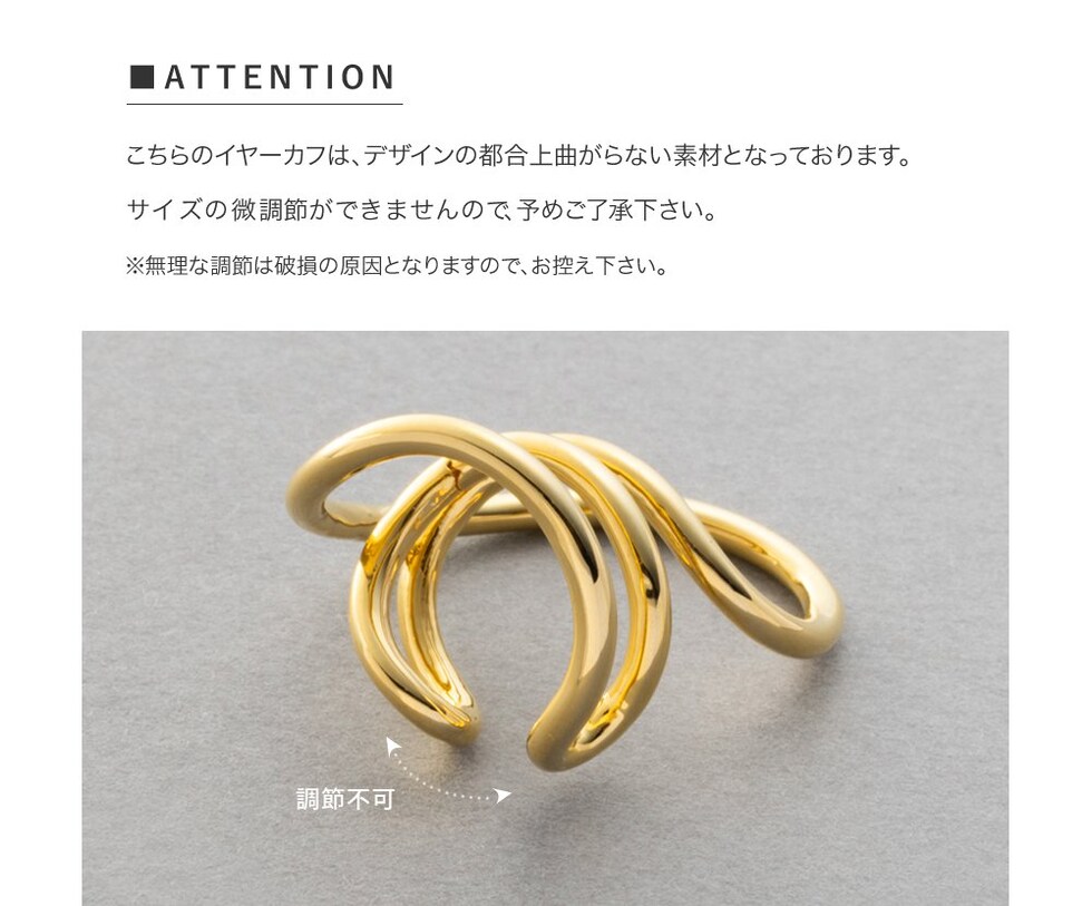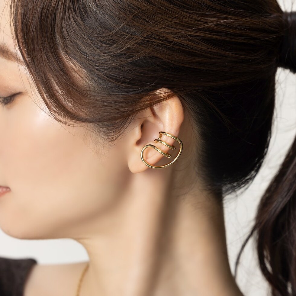ニュアンスある立体的なフォルムが目を惹く片耳用イヤーカフ。主役級の存在感がありながらも緩やかな曲線を描くラインが女性らしい印象を与えてくれます。単品使いはもちろん、お手持ちのピアスやイヤーカフと合わせてスタイリングを楽しんで◎