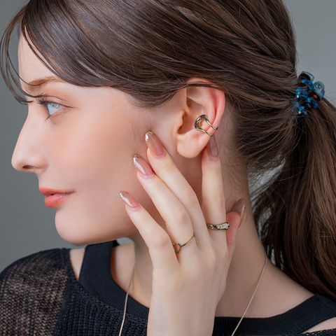 ぷっくりとしたメタルが艶めくイヤーカフ。ニュアンスのあるラインが挟むだけで、スタイリッシュな印象に仕上がります。シンプルだけど程よい存在感で、重ね付けにもオススメなアイテム◎