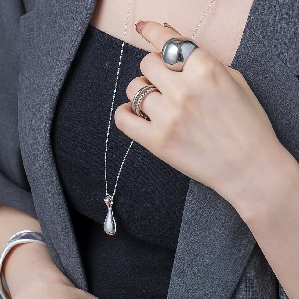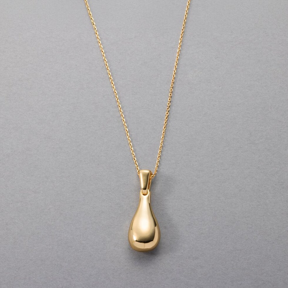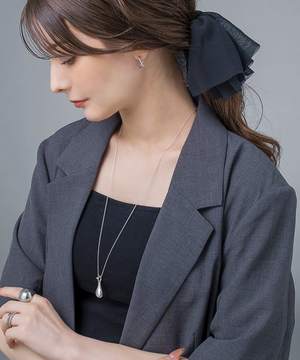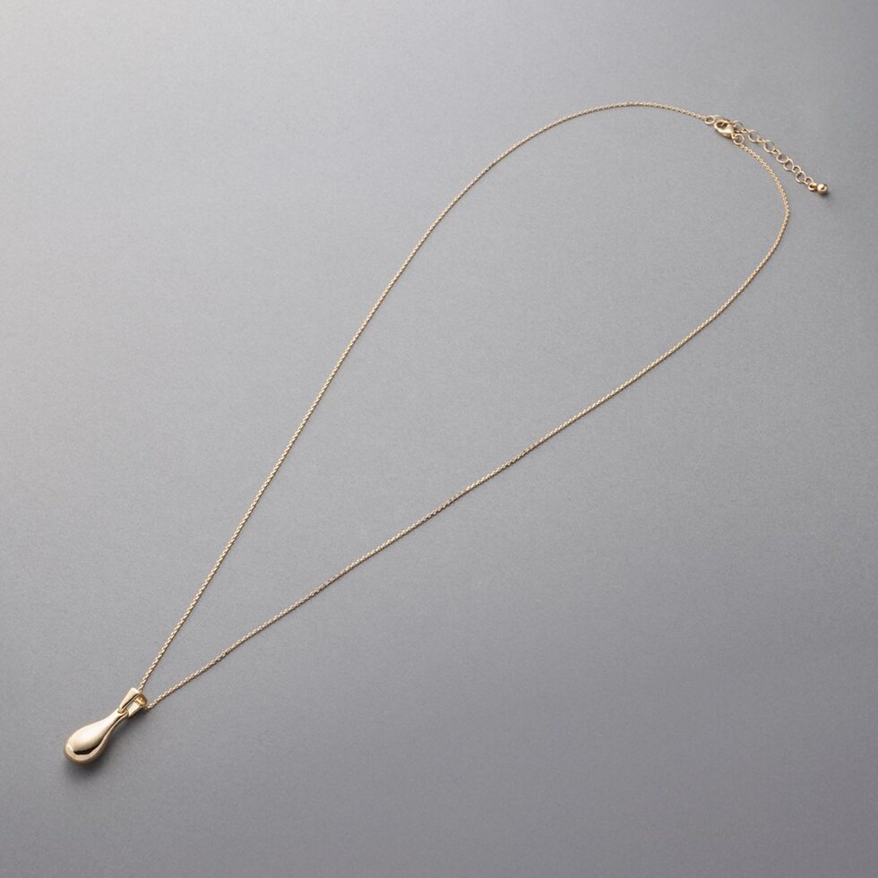 縦長ドロップのロングネックレス。上品に艶めく縦長ドロップと華奢チェーンが洗練された印象を演出。程よい存在感でコーデにアクセントを添えてくれるアイテムです。