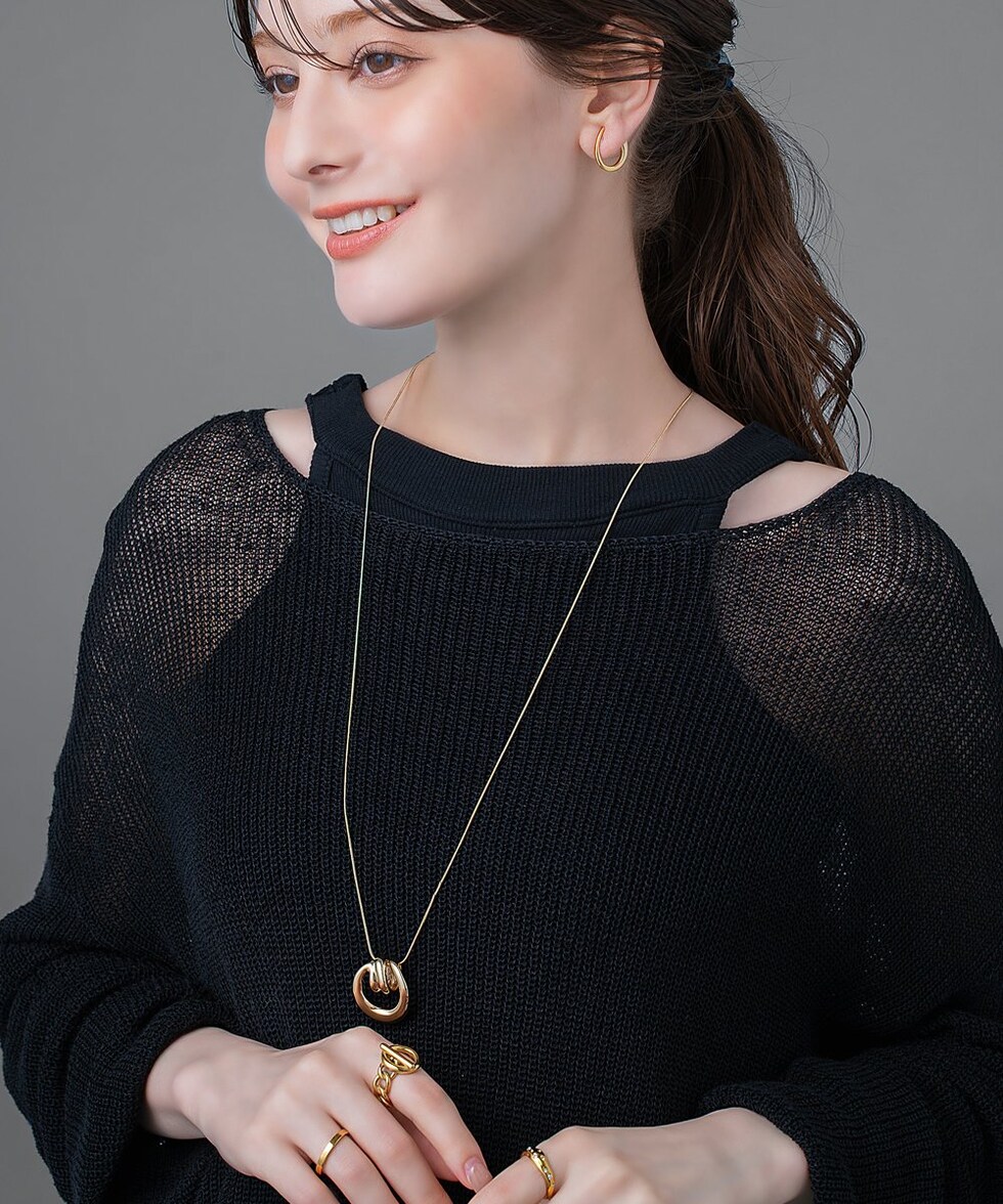 立体感のある変形メタルのロングネックレス。艶とヴィンテージ、2つのタイプから選べるデザインで、気分やコーデに合わせたスタイルが楽しめます。大人の装いにさりげない個性をプラスしてくれる、アクセント使いにぴったりなアイテムです。